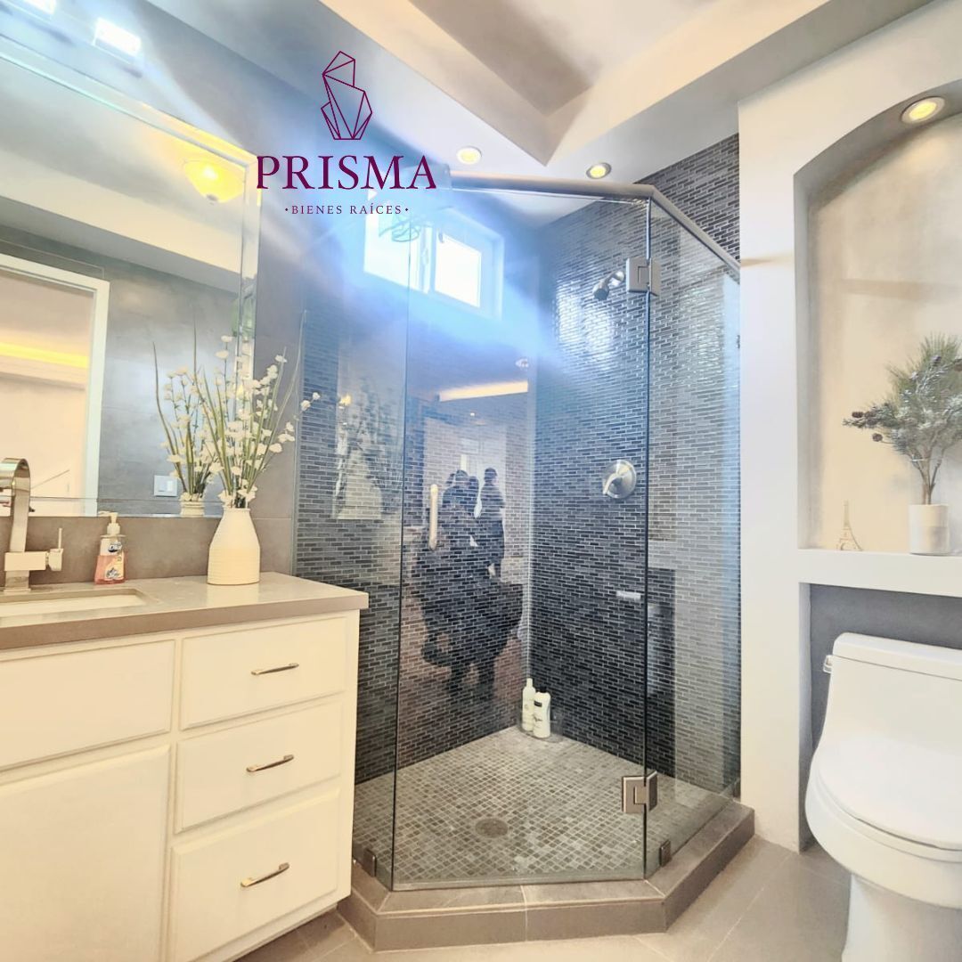 🛁 2 baños y medio con cubiertas de cuarzo en lavamanos y cristales templados.