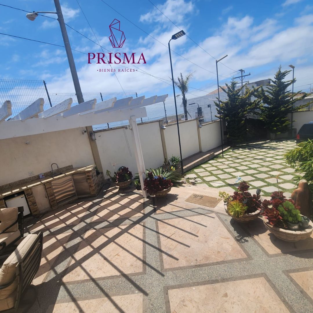 🌿 Patio muy amplio con hermoso jardín e iluminación ideal para reuniones o relajación con zona de azador con piso de cantera y cubierta granito , pergola, sala de exterior, jacuzzi, fuente ,sanitarios , ⛽️ Mina de gas 170 litros