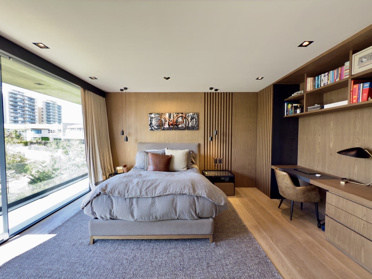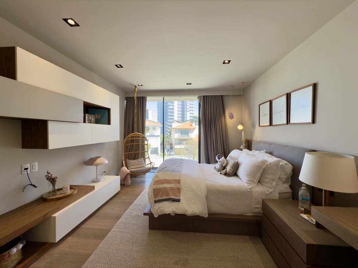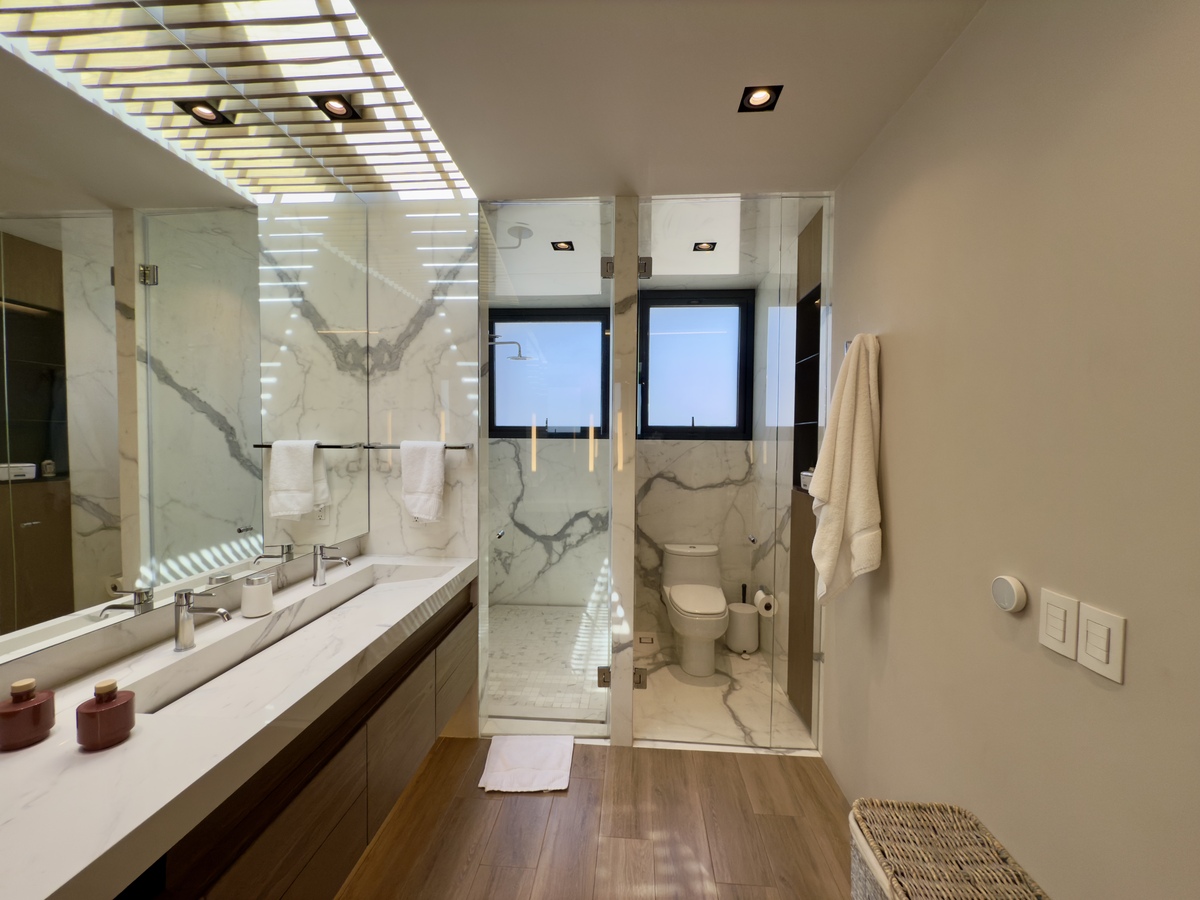 En el segundo nivel encontramos 4 habitaciones( dos de ellas comparten baño). Todas cuentan con vestidor y balcón. La principal con un amplio vestidor con tragaluz y baño.