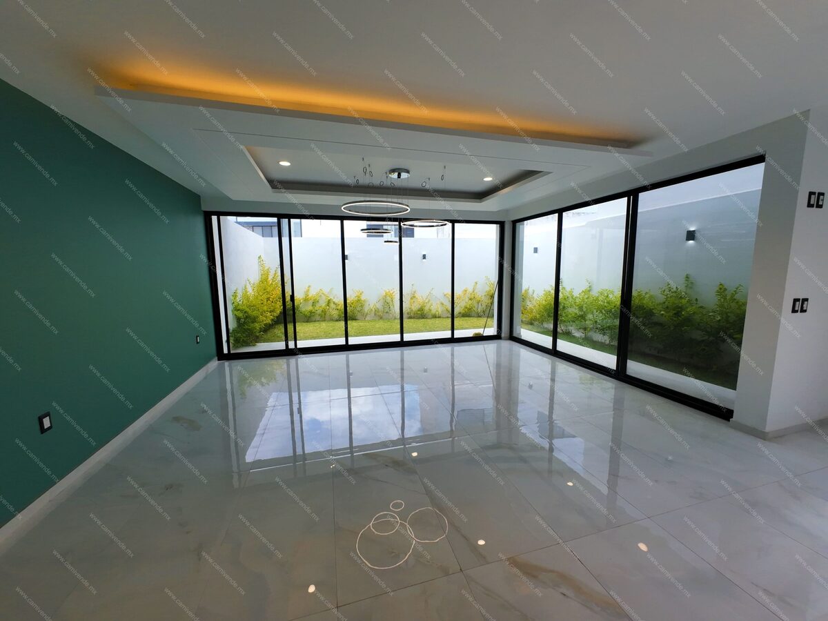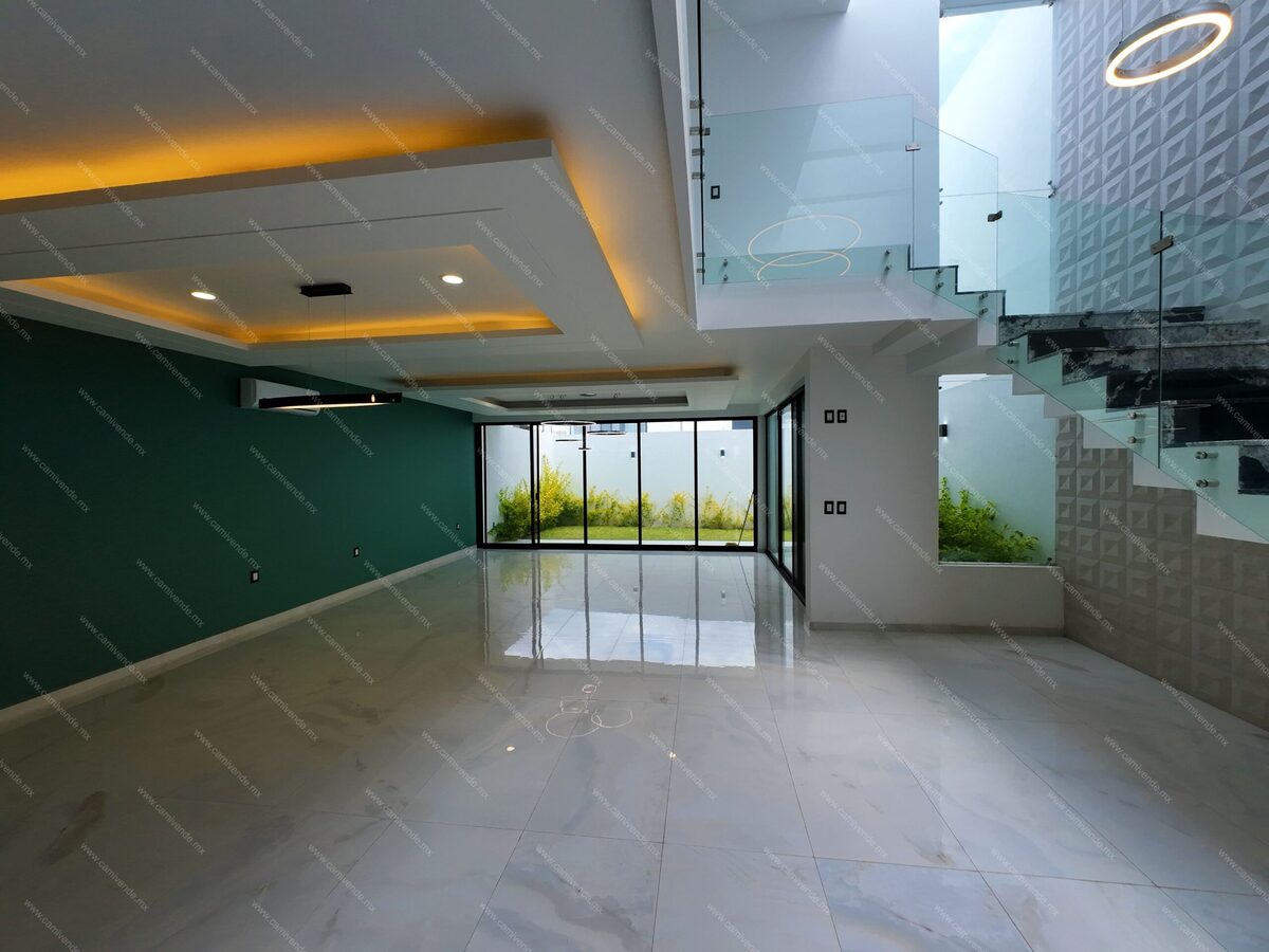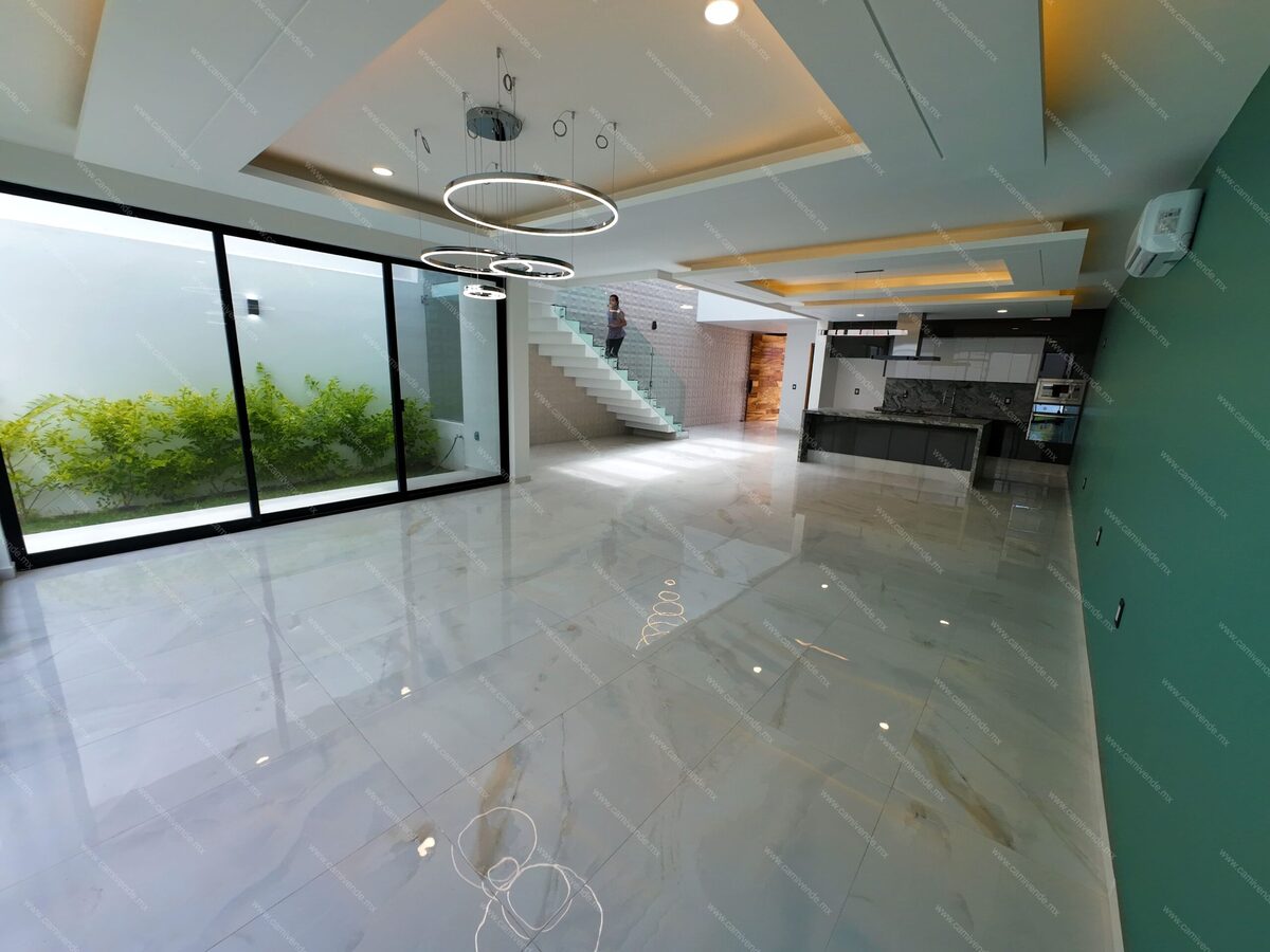Sala y comedor con diseño abierto, plafones e iluminación LED