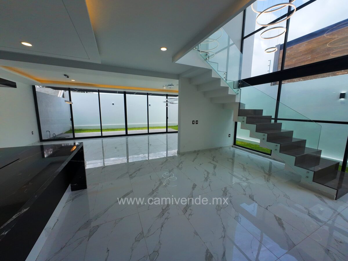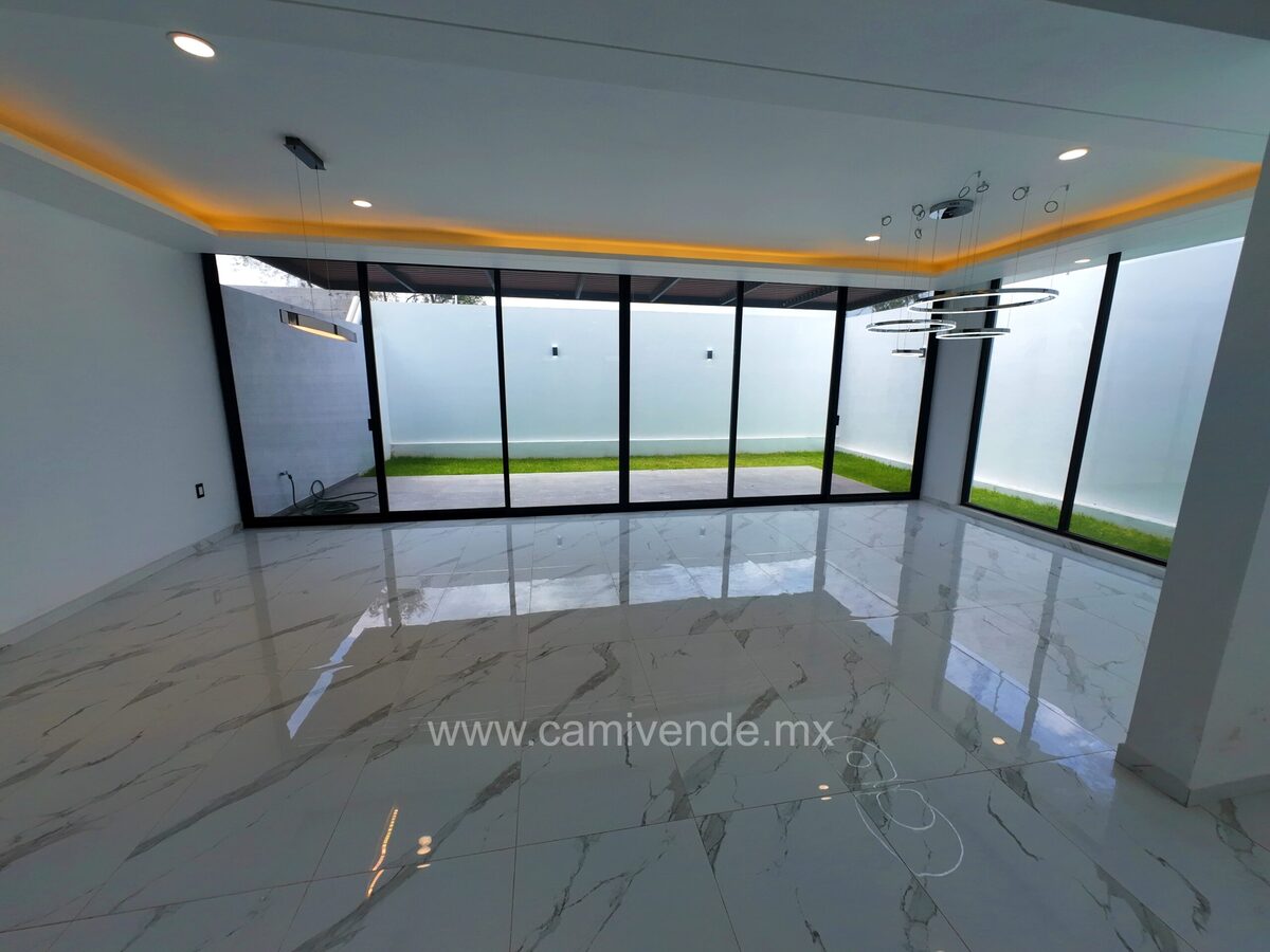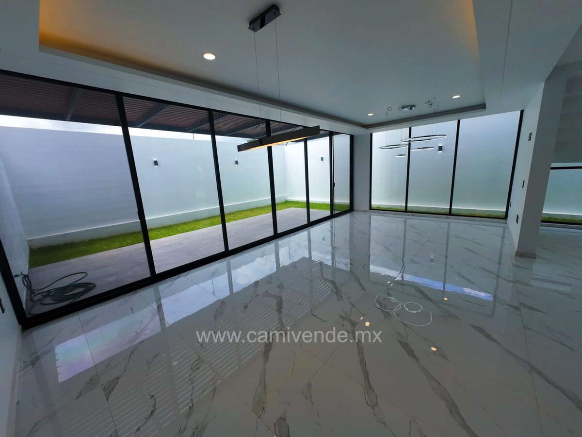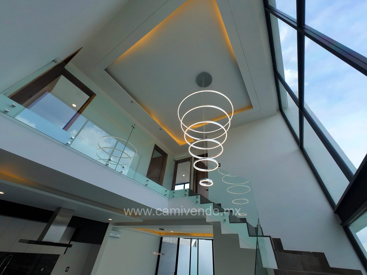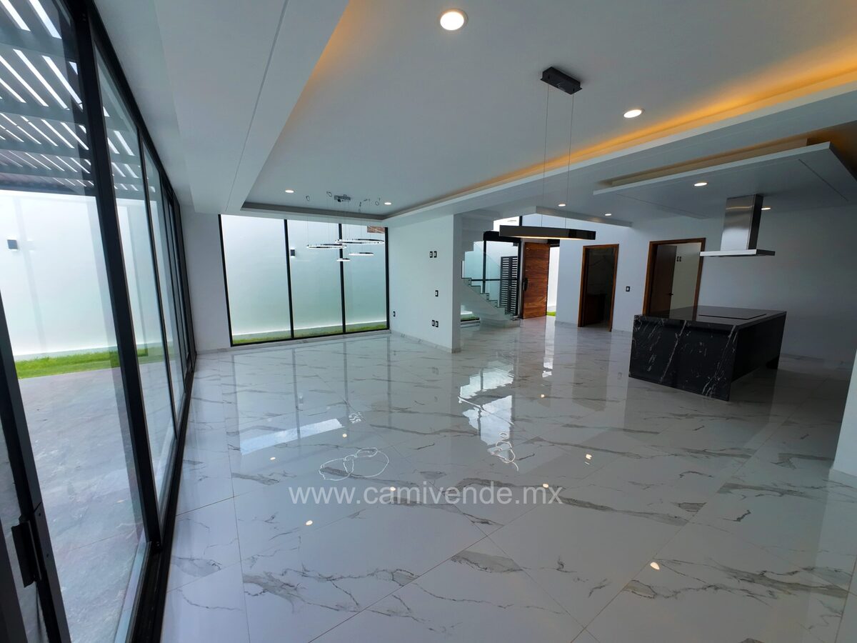 Sala y comedor con diseño abierto, plafones decorativos e iluminación LED