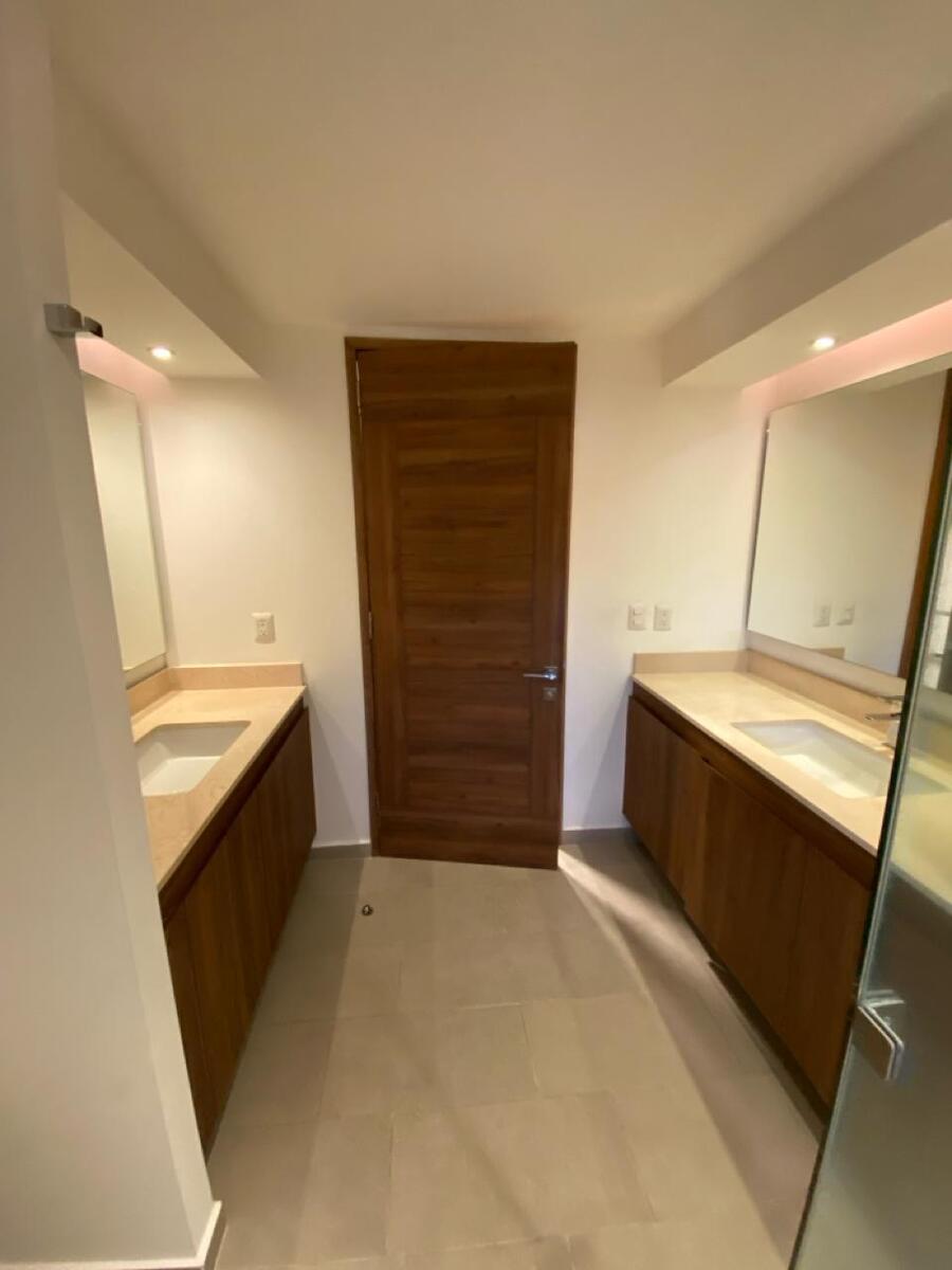 Accesas por un pasillo que vestibula la muy amplia área social, con espacio para estudio o bar, área de TV, medio baño de visitas, tres recámaras con baño privado, la recámara principal enorme, con muy buen vestidor y baño con doble lavamanos, las secundarias con closets, la cocina integral con la lavandería y el cuarto de servicio completo integrados. El departamento todo es exterior, súper iluminado con una excelente temperatura durante todo el año, todo está encortinado.