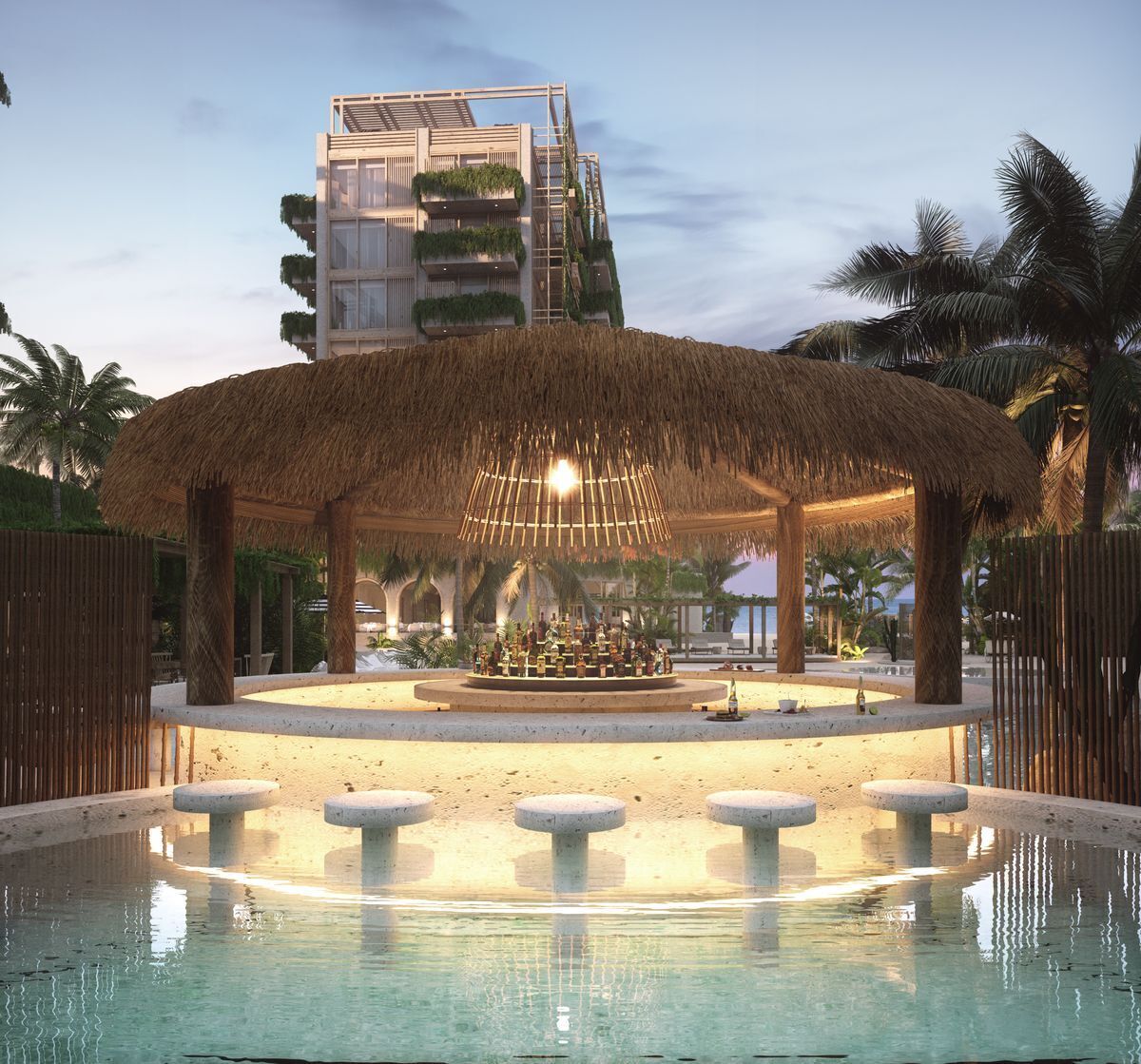 Esta colección de 54 residencias y áticos está completamente inmersa en su club de playa privado, que cuenta con varias piscinas, un tramo prístino de playa de arena blanca bordeada de palmeras y manglares, un spa, un mercado y más.