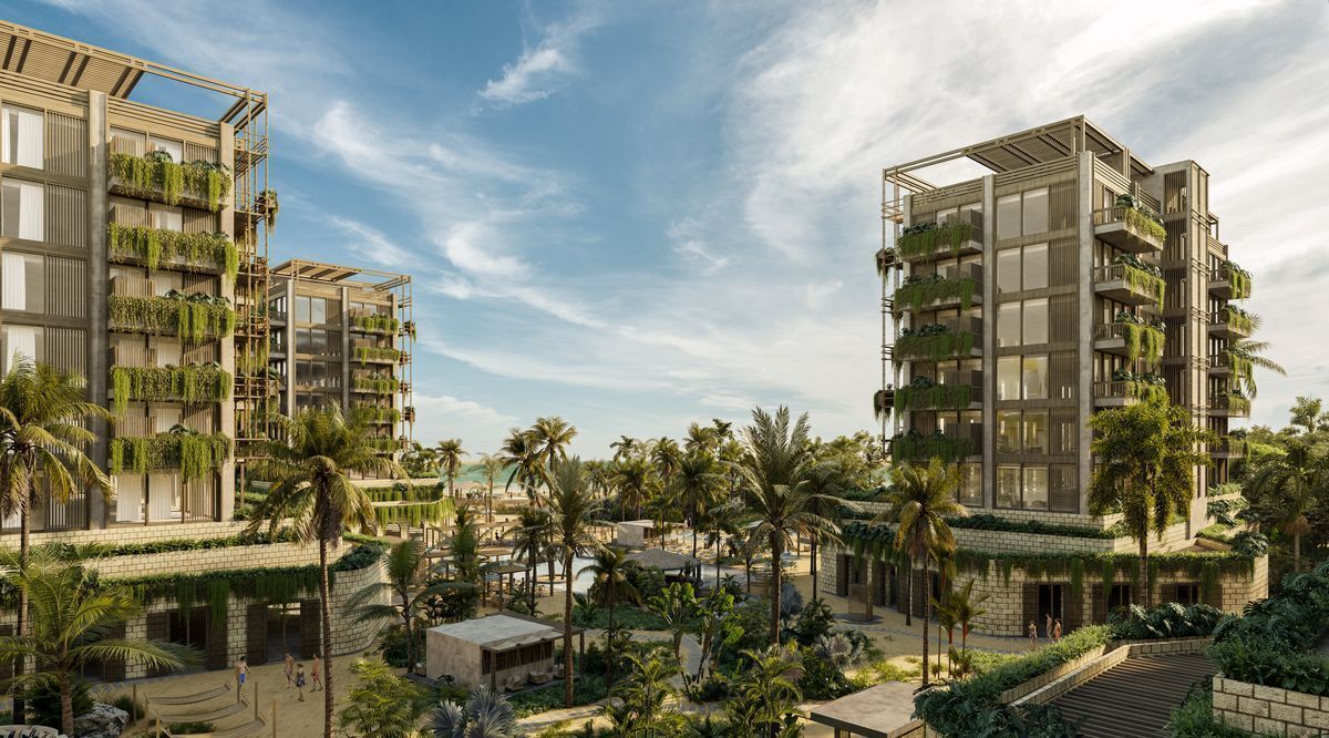 This collection of 54 residences and penthouses is fully immersed in its private beach club, which features several pools, a pristine stretch of white sand beach lined with palm trees and mangroves, a spa, a market, and more.