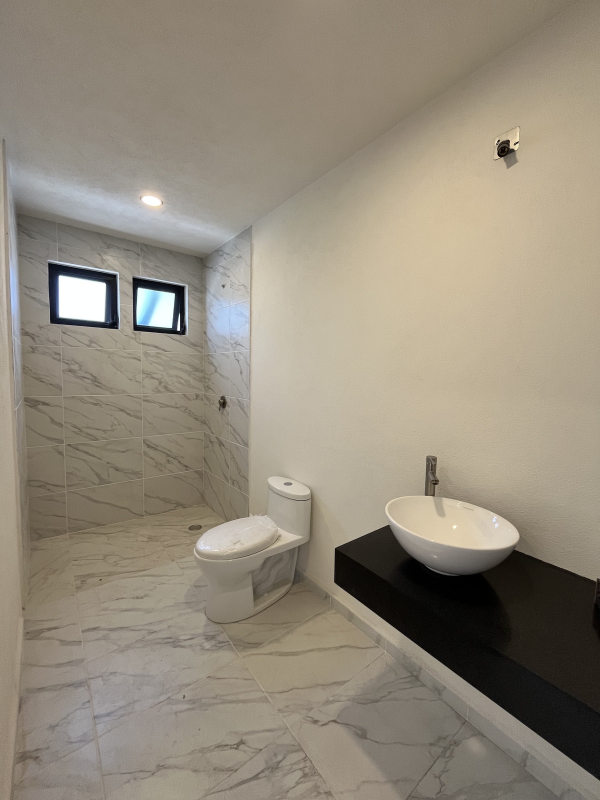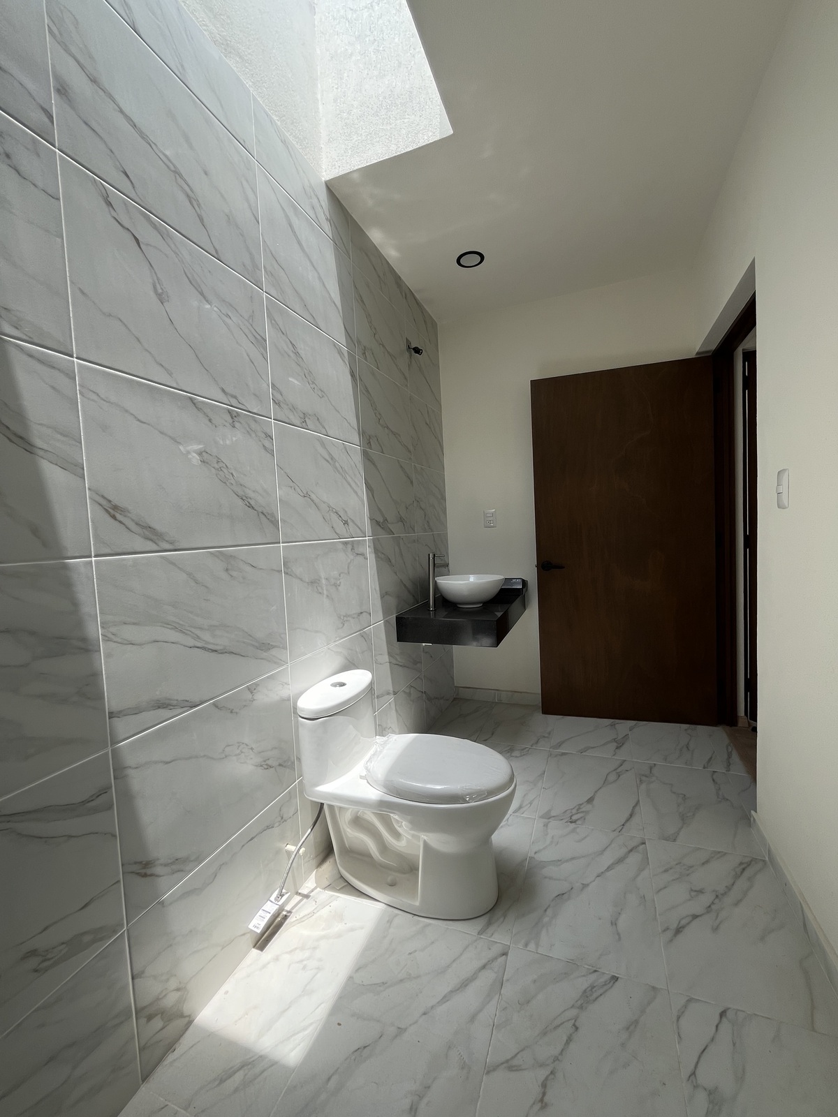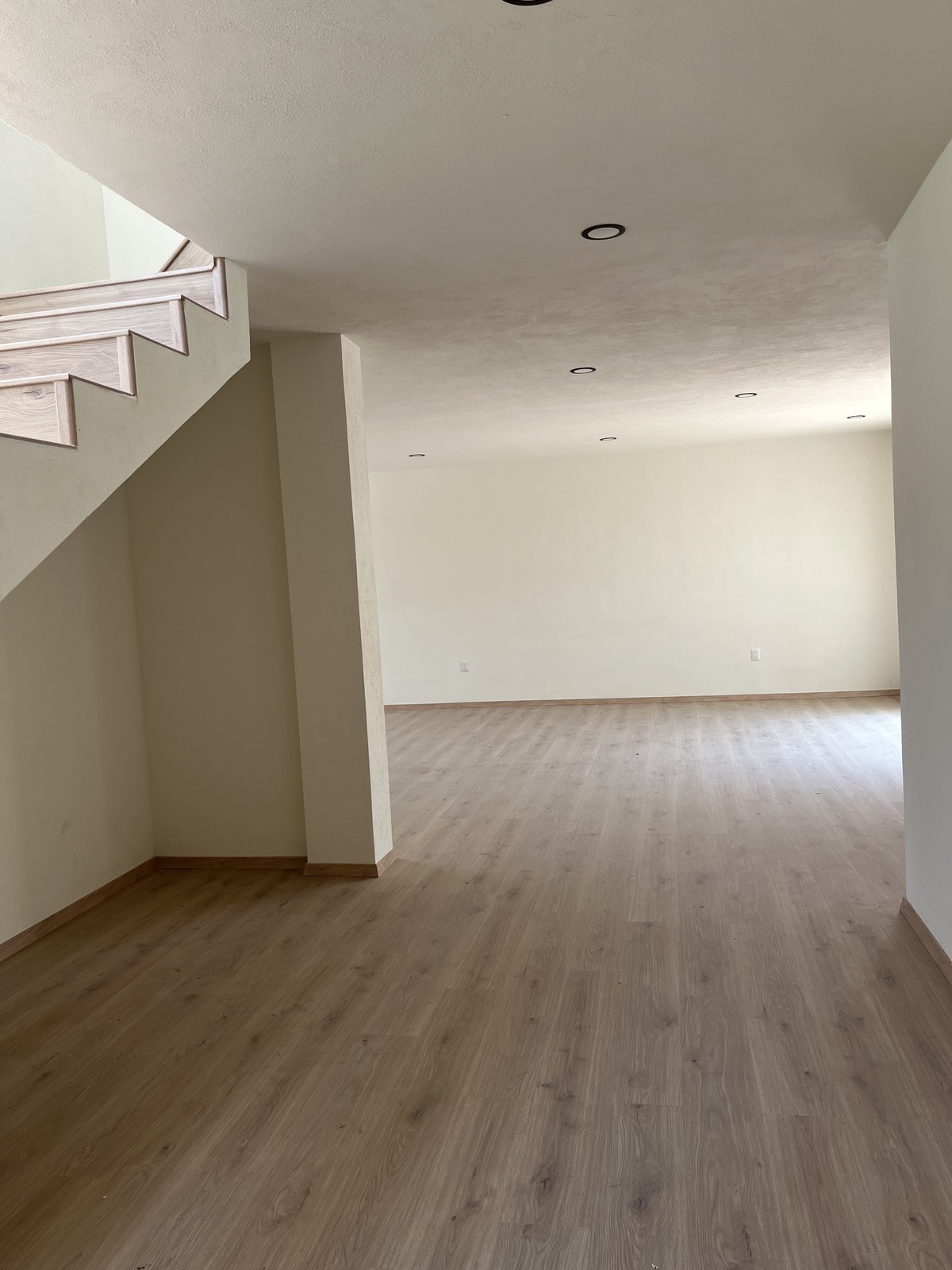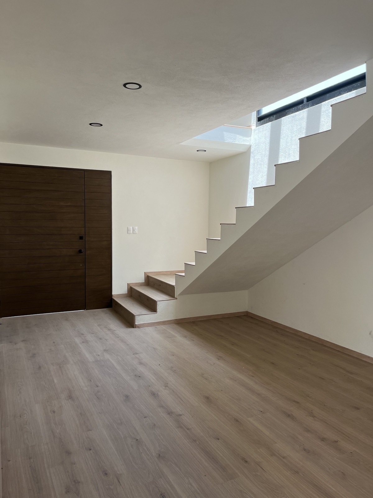En PB la amplia entrada nos invita a espacios amplios, abiertos, iluminados y armoniosos donde encontramos el espacio perfecto bajo la escalera para una barra, estantes o área de estar y un medio baño. La sala y comedor son maravillosos en cuanto a luz y espacios se refiere. Se integra un jardín que tiene acceso directo a la cocina integral, con gabinetes y barra de gran calidad, así como área de servicio (de lavado y servicio con baño completo), que conecta con el estacionamiento para dos autos.