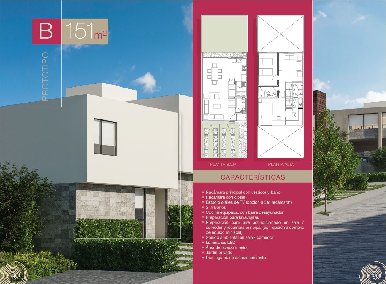 4 prototypes of houses with 2 and 3 bedrooms.Prototipo "B" 151 m2. de Construcción en dos niveles.