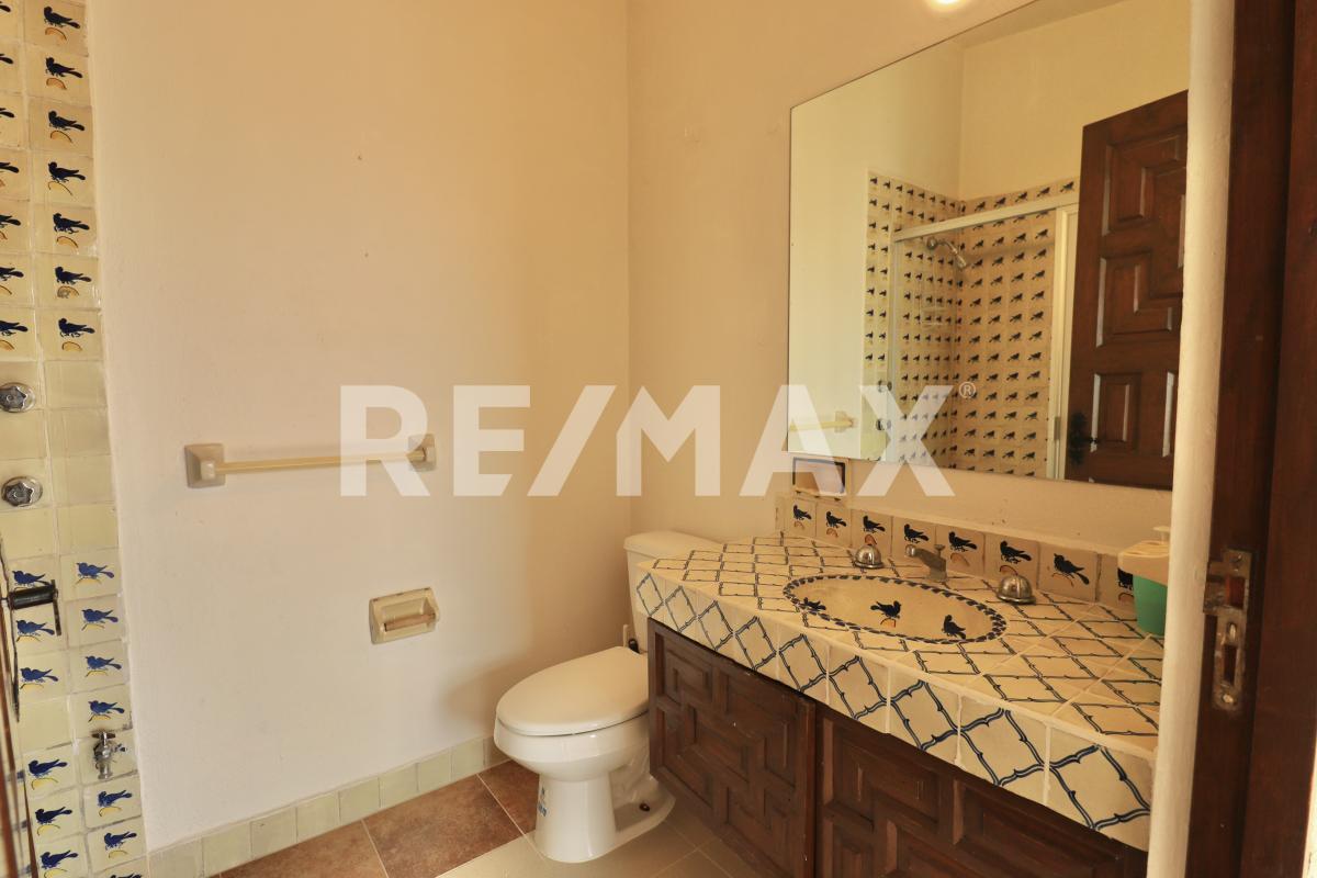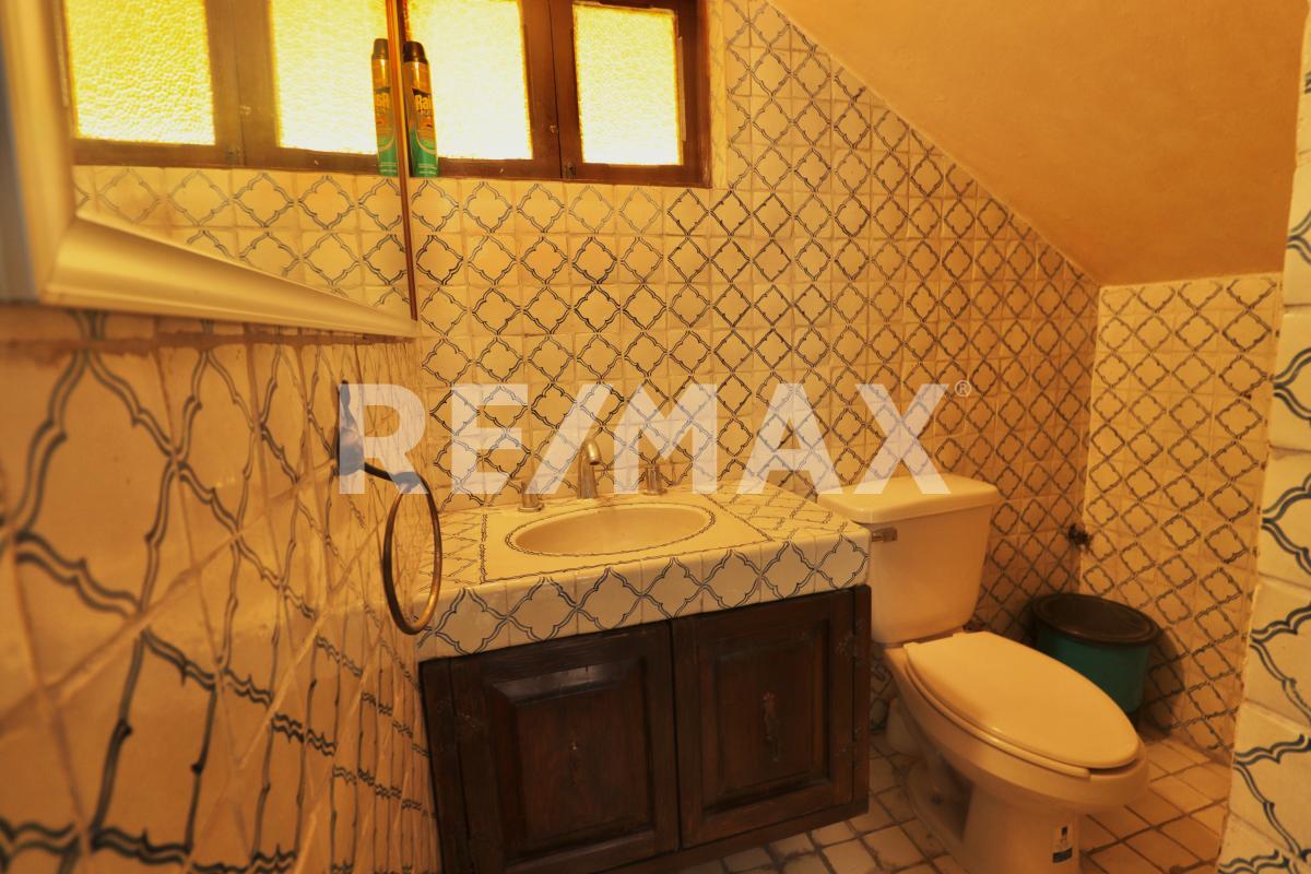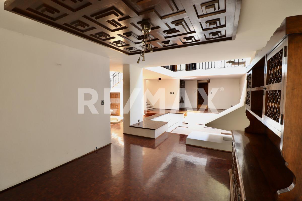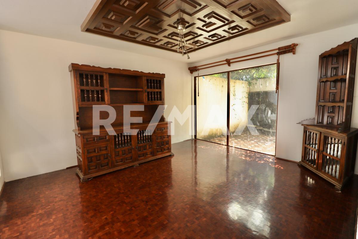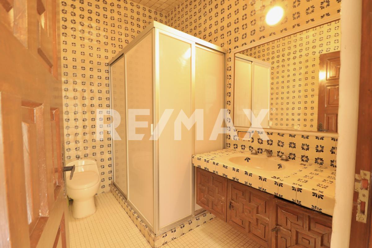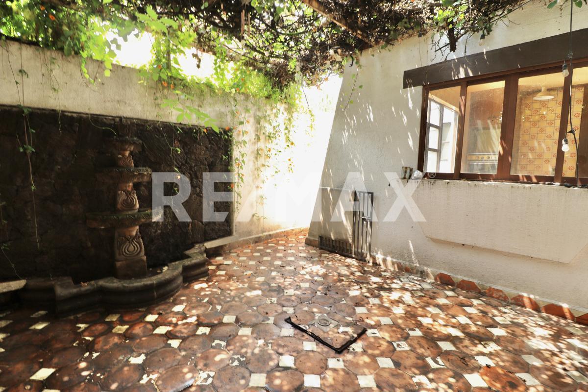 Dentro de la casa encontrarás un recibidor, estancia con chimenea, área de antecomedor, comedor, fuente, estudio, cocina con acceso al patio trasero, medio baño, área de servicio y cuarto de servicio con baño.