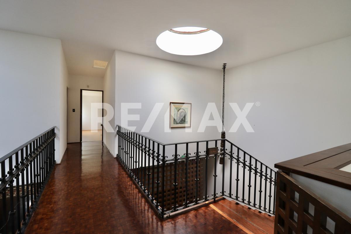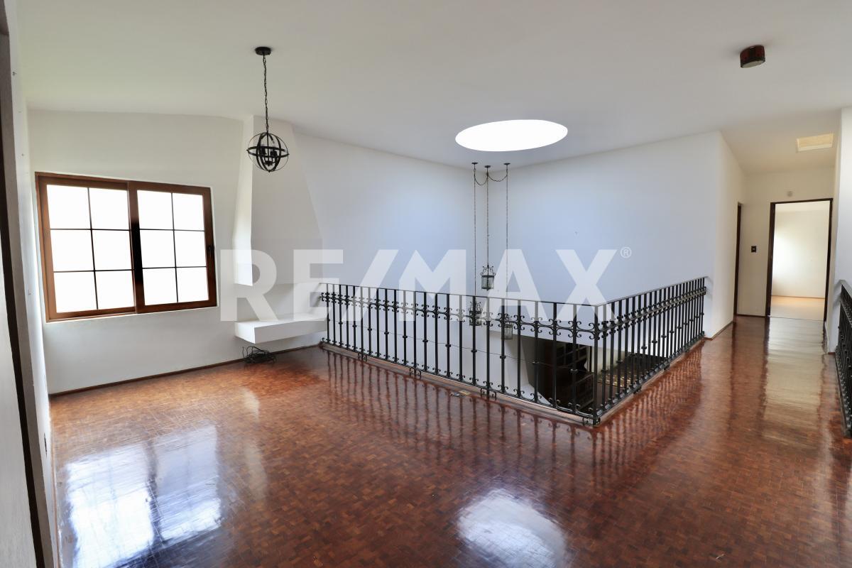 Al subir encontrarás una sala de televisión con chimenea, un par de closets para visitas, cuatro habitaciones, dos con vestidor y baño, la recámara principal cuenta con un espacio para estudio y dos recámaras con clóset comparten baño.