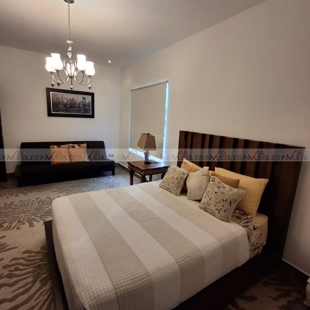 La casa es de dos plantas y. cuenta con 4 recámaras, dos de ellas con tapanco por lo que tienen mayor ocupación, además tiene un estudio y cuarto de TV. Se entrega completamente amueblada y equipada. Dentro del equipamiento cuenta con: Cuarto de servicio, bodega, cuarto de máquinas, doble acceso con portón eléctrico, cisterna, caldera, aire acondicionado, calefacción, planta de luz, internet y cámaras de vigilancia.