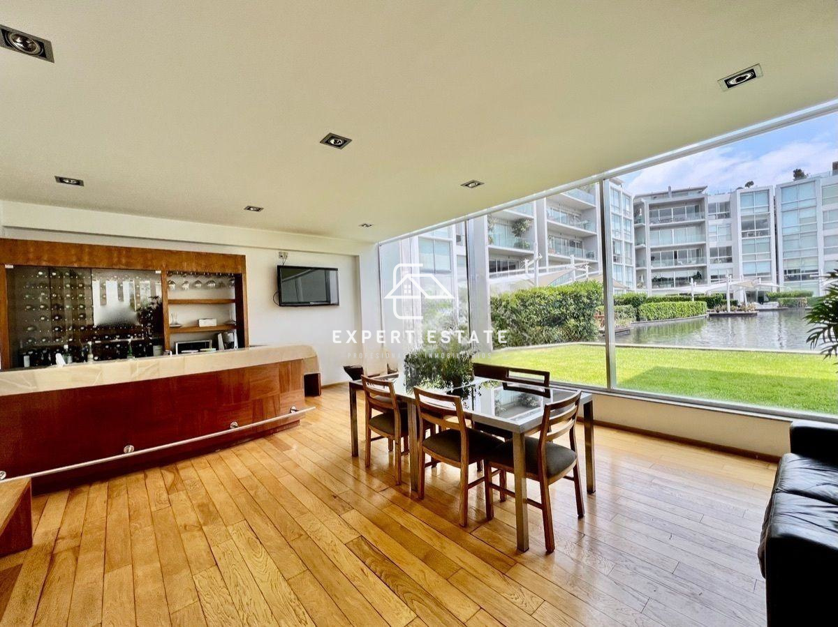 Échale un vistazo a este exclusivo, amplio y moderno depa recién salido del horno de 222.5 m2 habitables con acabados de lujo. Se encuentra dentro de un tranquilo edificio de tan solo 16 departamentos y puedes disfrutar de las excelentes amenidades que te ofrece Misiones de Santa Fe. Consta de luminosa estancia con sala/comedor y práctica cocina abierta equipada. Tiene 3 acogedoras recámaras, todas con baño integrado, 2 con vestidor y 1 más con clóset. Cuenta con cuarto de servicio con baño completo, cuarto de lavado, 2 estacionamientos designados y bodega. Súper amenidades como: salón de eventos con terraza, restaurante y bar con vista al lago, carril de nado, chapoteadero, baños con con regadera, gym, juegos para niños, canchas de pádel, futbol, basket y más. Vigilancia 24/7 y cctv. Que no te lo ganen, haz tu cita hoy mismo al 553 405 2050.