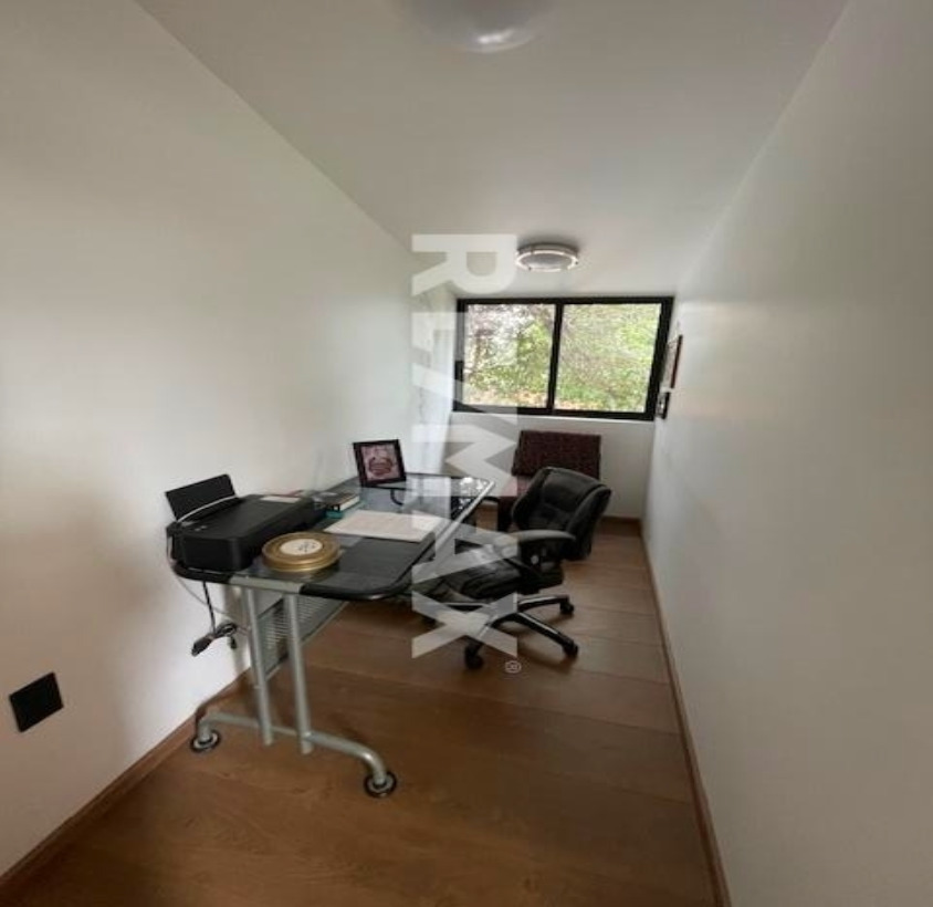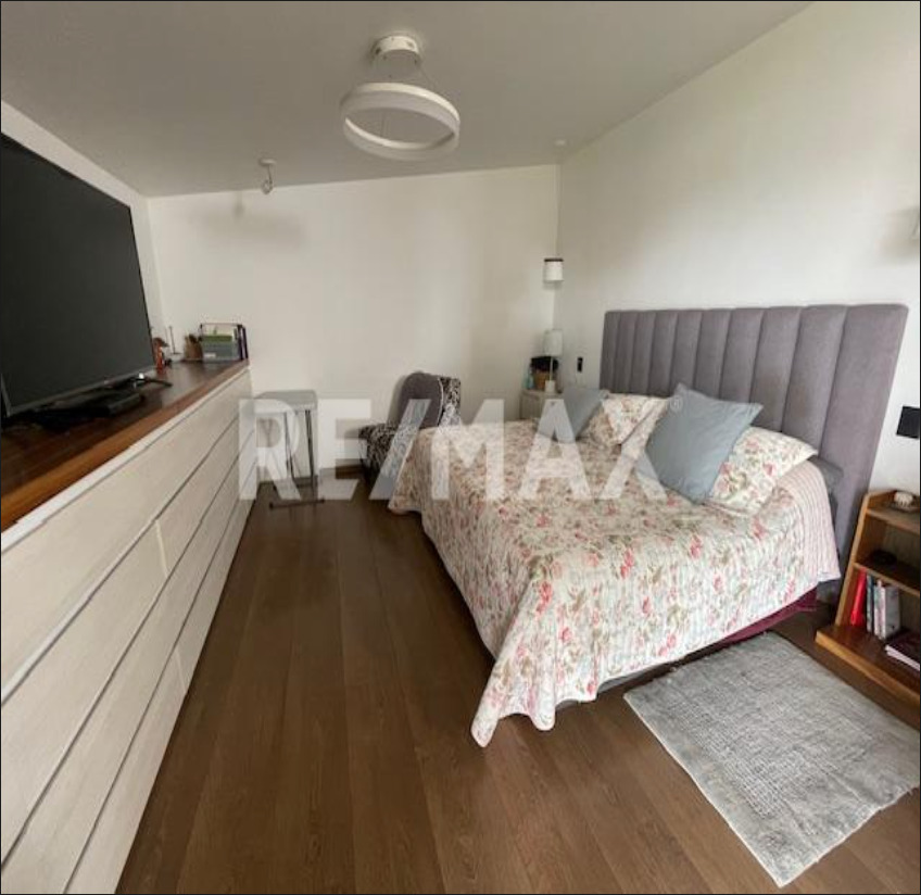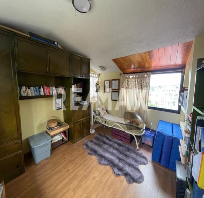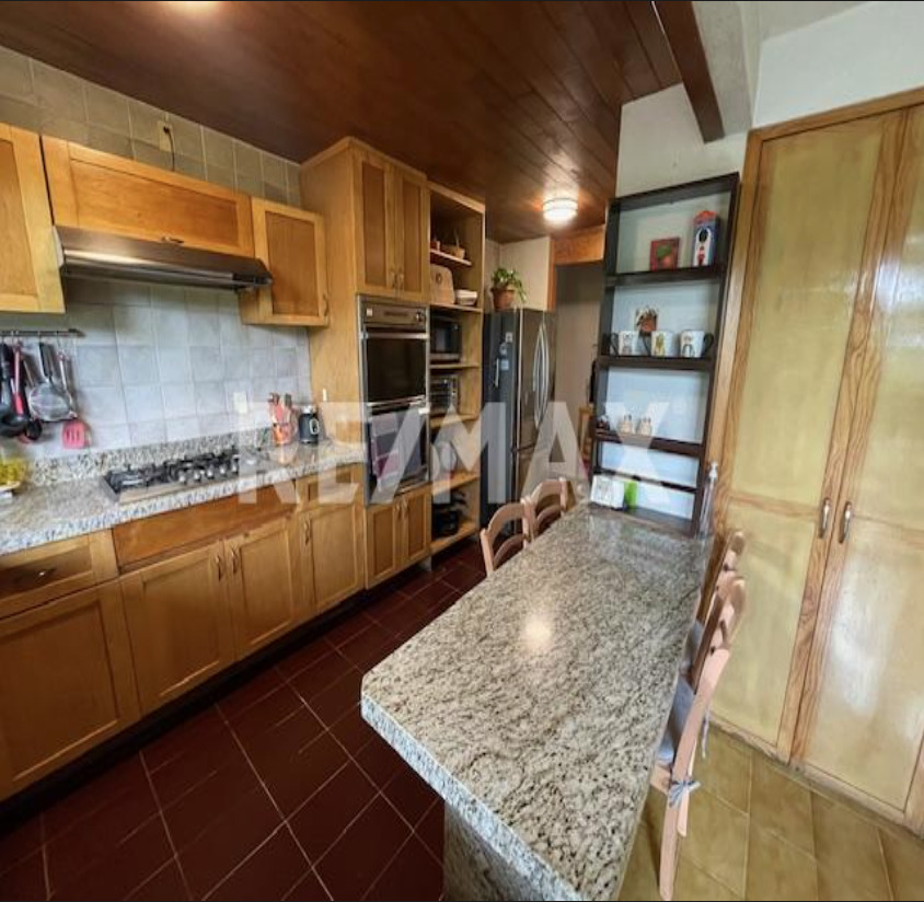 Distributed over half levels, Ground Floor. It has a living room with a fireplace, a bar or cellar, dining room, and TV room, both with access to the pleasant backyard which has a grill and fountain, laundry area, and service room with a full bathroom and independent access, kitchen with granite countertop. Upper Floor. Bedroom or Study, master bedroom with dressing room, bathroom, and balcony, secondary bedroom with bathroom, and a small study area or space for reading and hobbies.