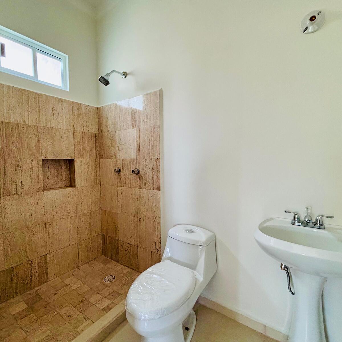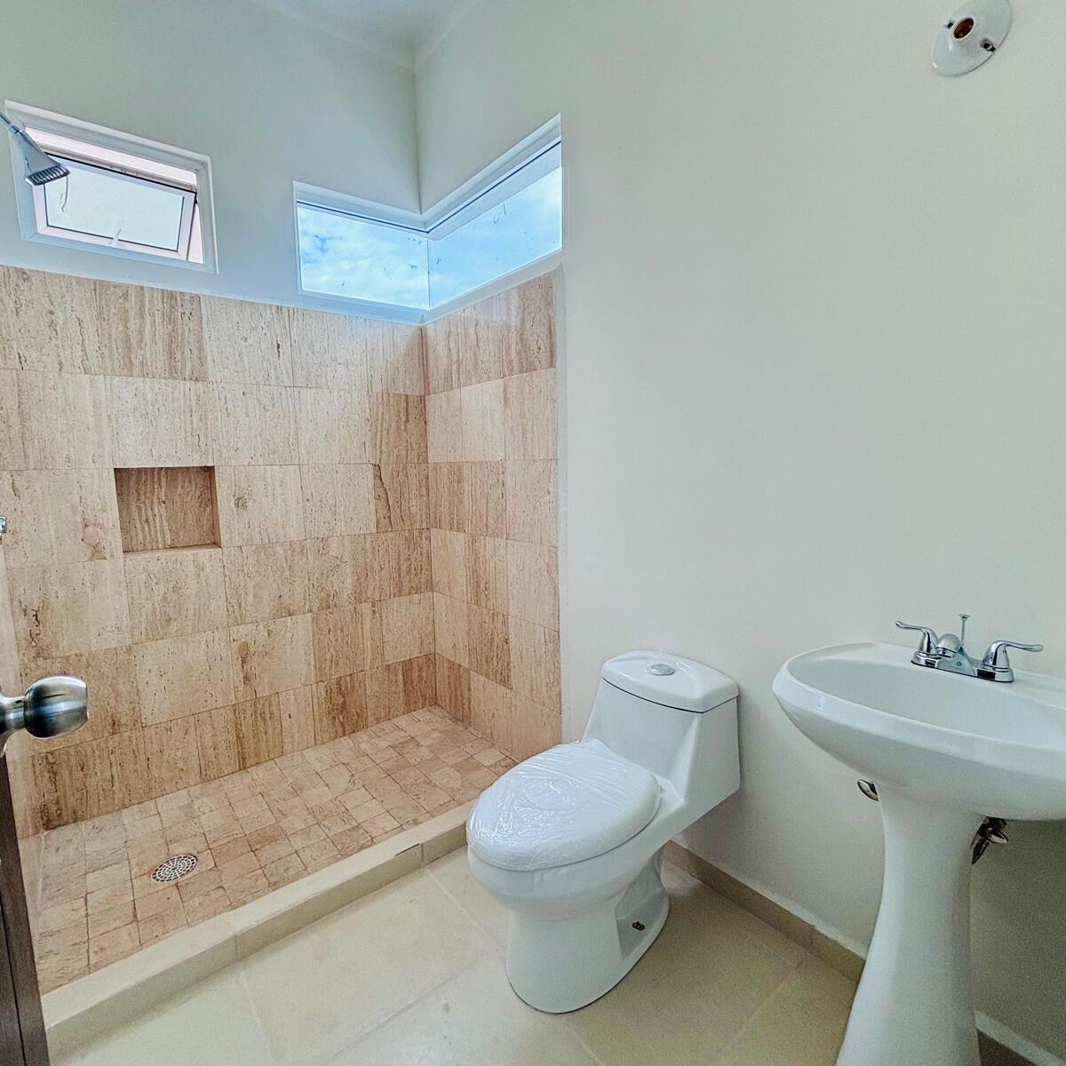 🔹2.5 baño con acabado en mármol en la parte de la regadera