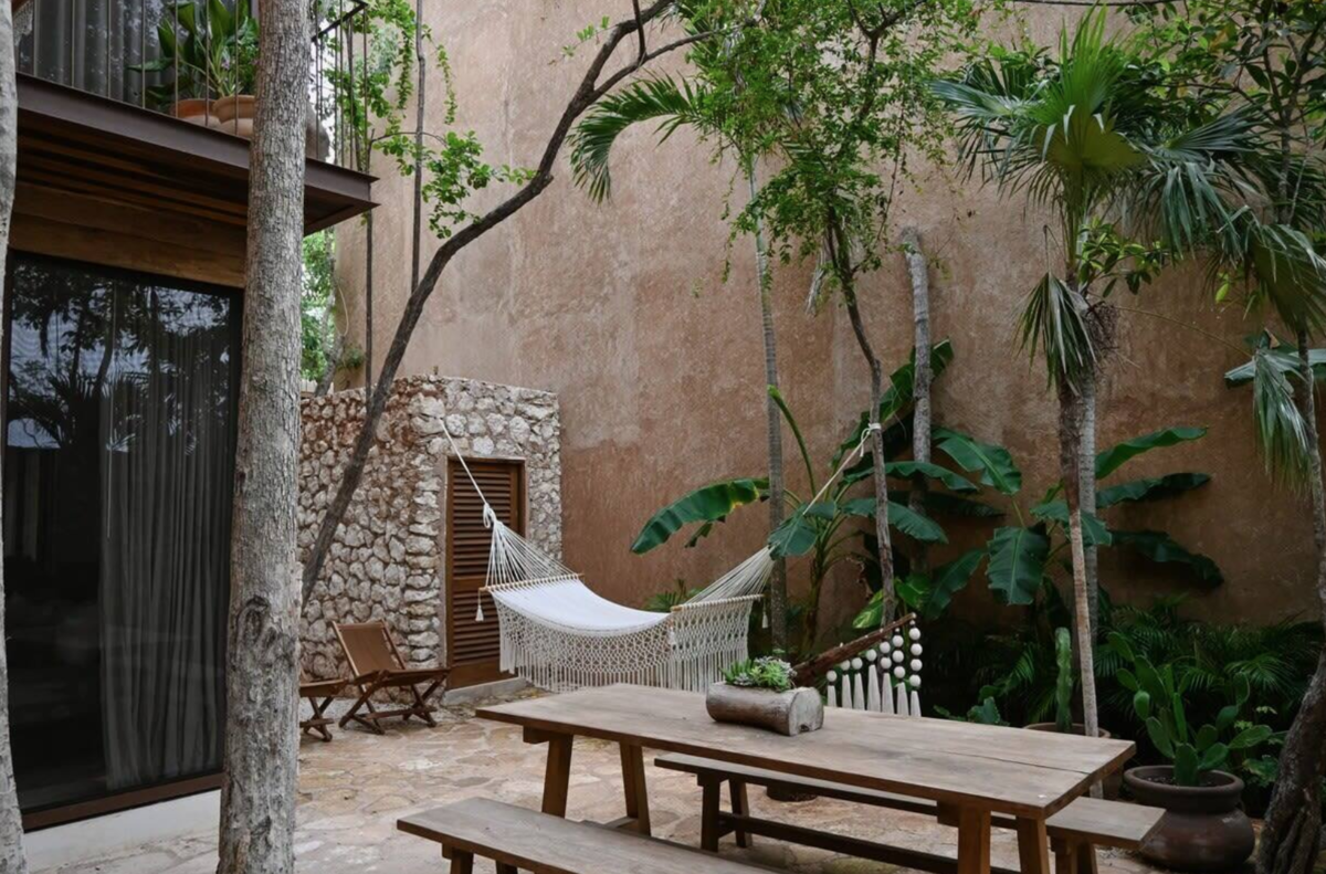 Private yard with outdoor space with hammock and open-air dining area, ideal for relaxing and entertaining