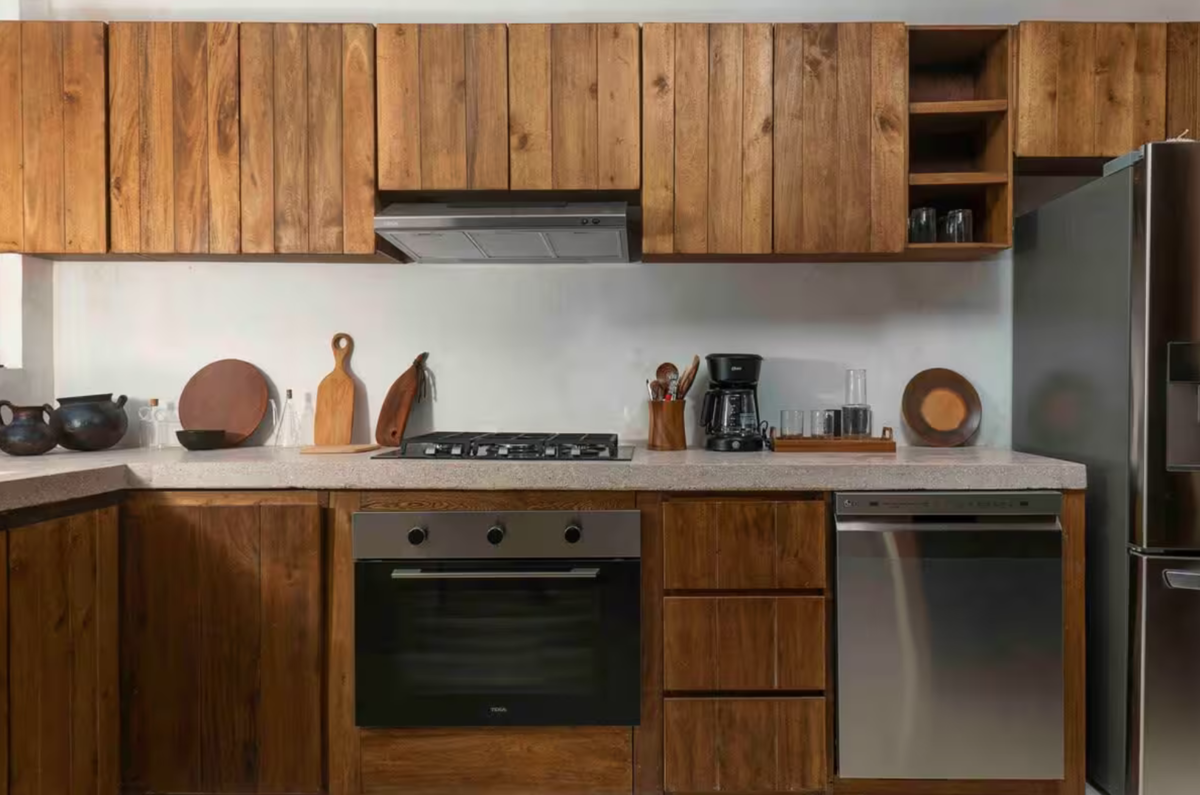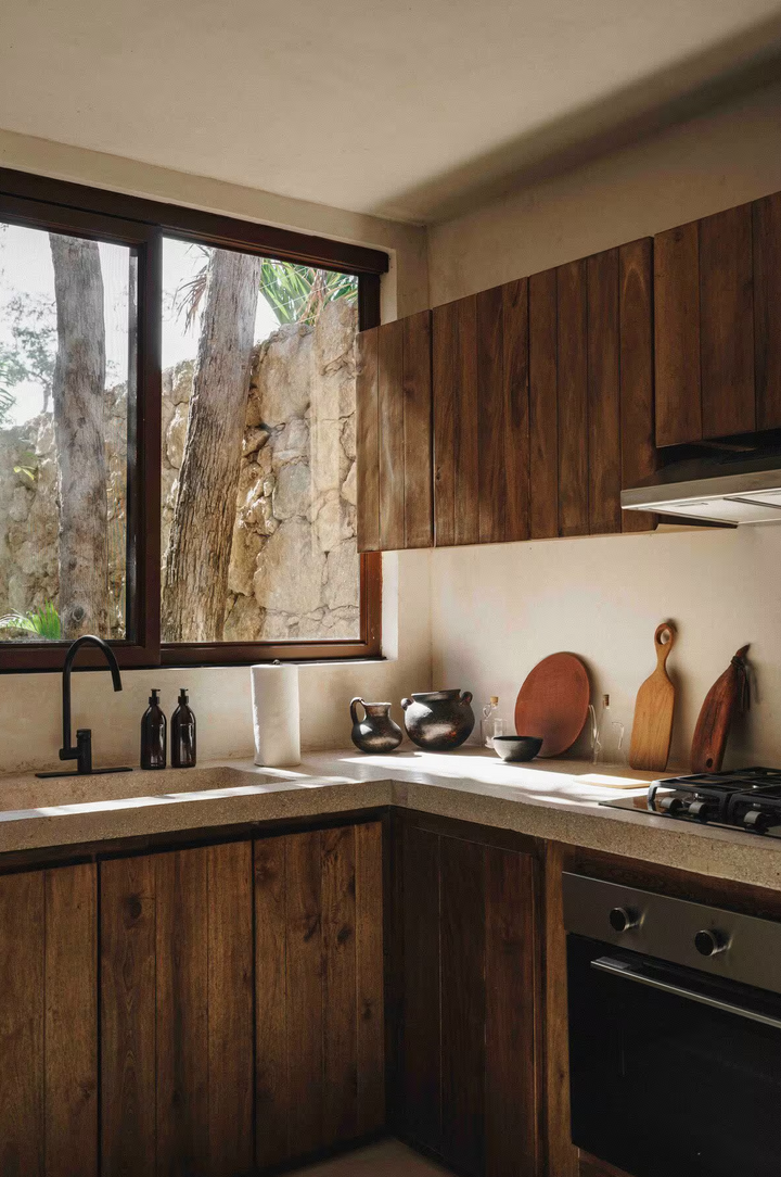 Fully equipped kitchen and open-plan living space that blends seamlessly with the outdoors