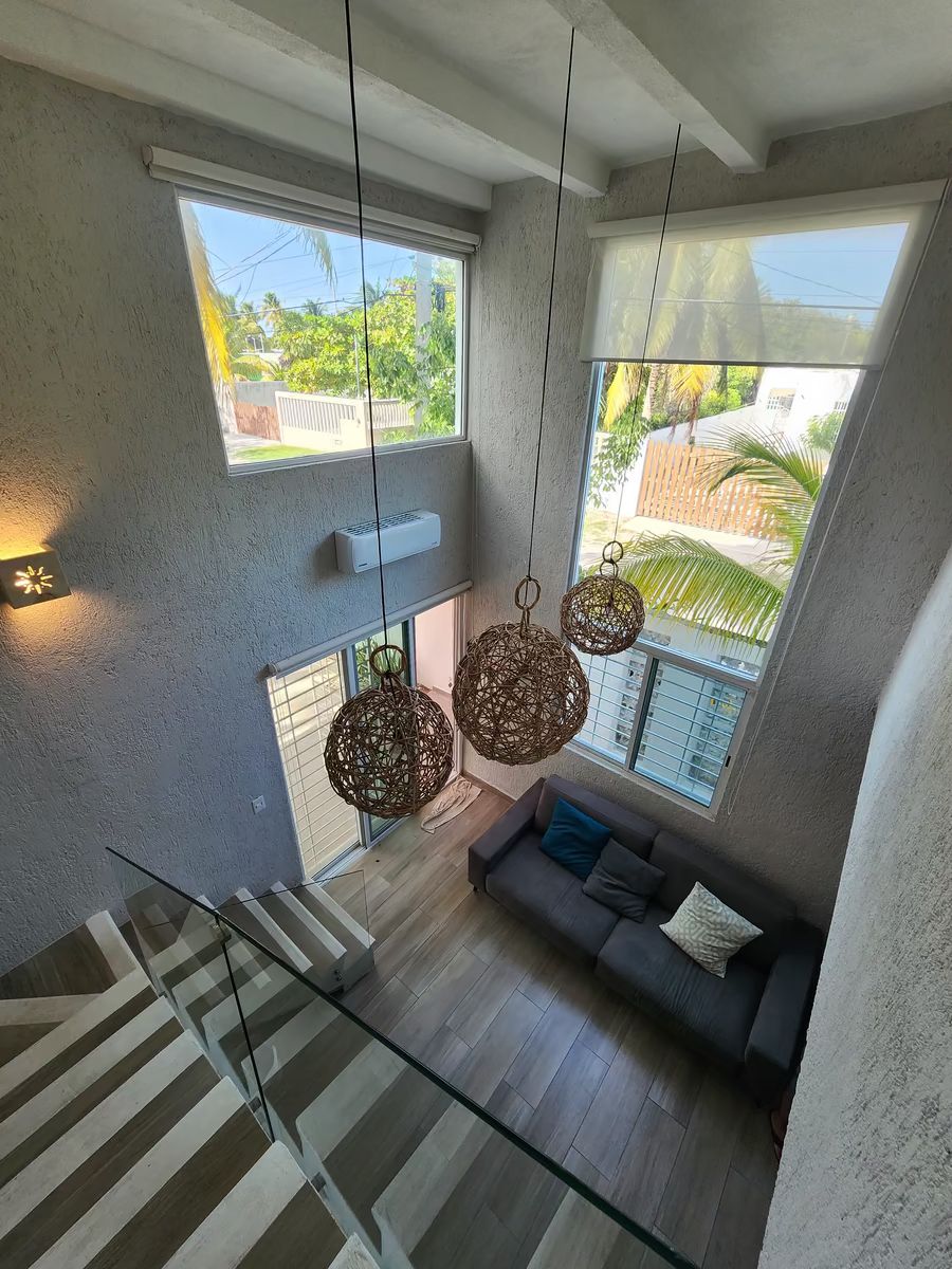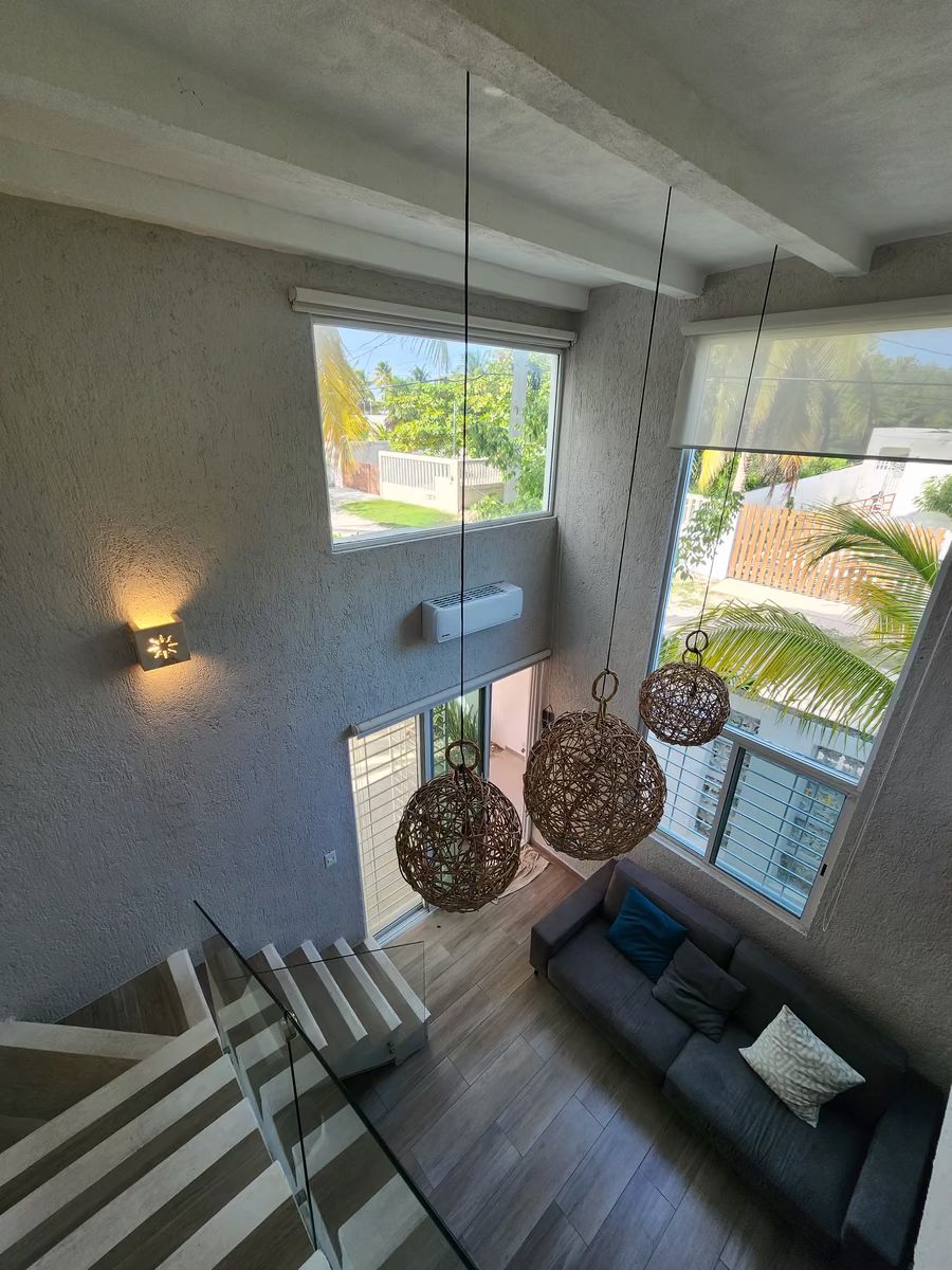 Moderna casa de dos niveles + mezzanine en excelente estado, ubicada a solo 200 metros del mar en Progreso, Yucatán, dentro de una calle privada con acceso directo a la playa.