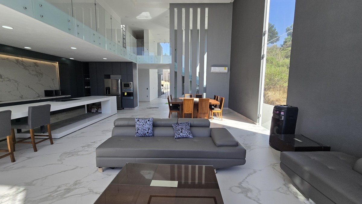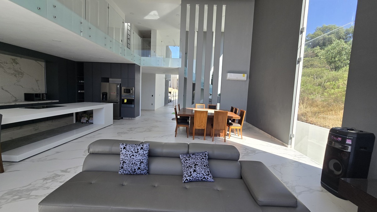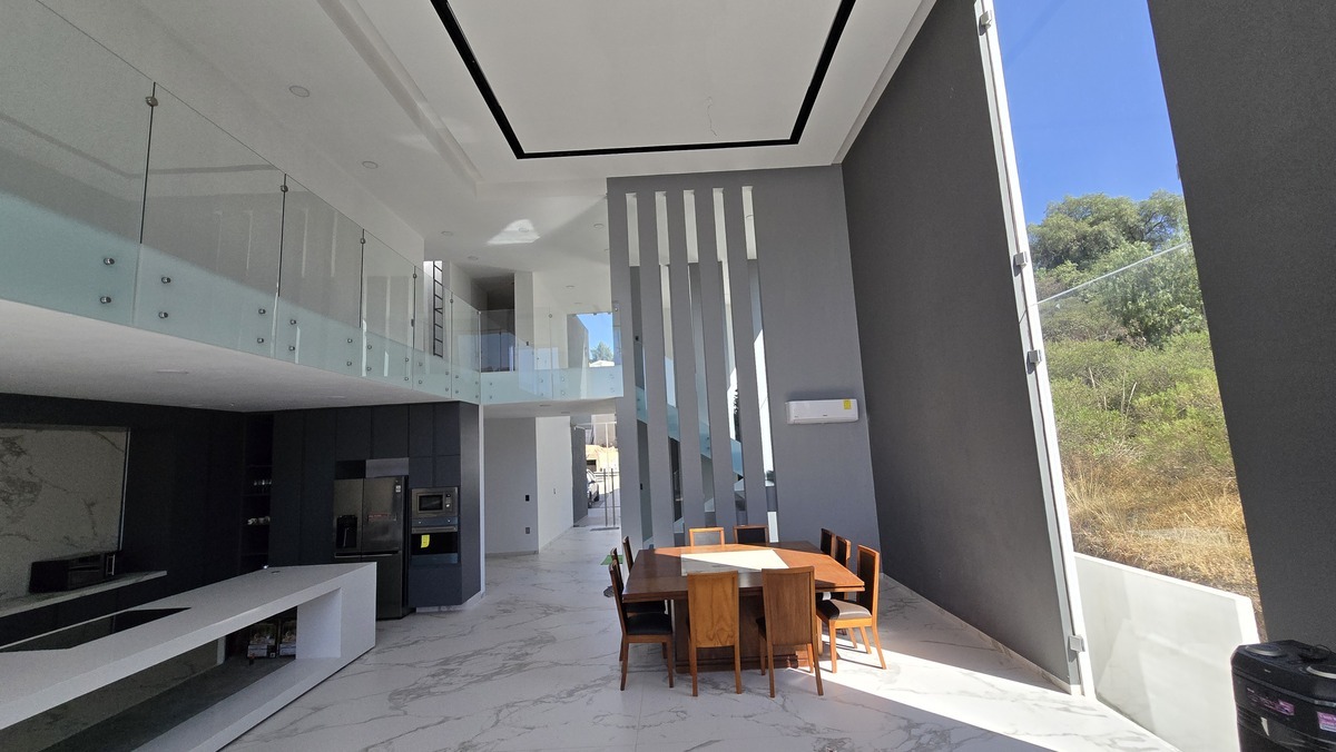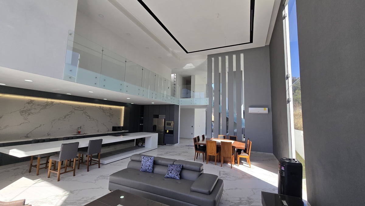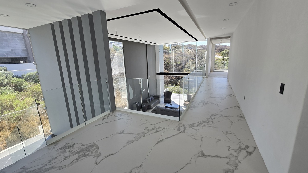 Modern project developed with beautiful views. With large windows and terraces, this house with double height throughout the living area features a spacious living room with terrace, open kitchen, study, and guest bathroom on the ground floor. Family room. Upper floor with 4 bedrooms with bathroom and dressing room. The master bedroom has a large dressing room and beautiful views. In the basement level, there is a game room with access to the garden. (There is preparation for a pool at an additional cost to the published price). Bathrooms. Storage rooms. Parking for 6 covered cars with the option for 8. Laundry room. Service room. Cistern.Moderno proyecto desarrollado con hermosas vistas. Con grandes ventanales y terrazas, esta casa con doble altura en toda la estancia, cuenta en nivel de planta baja con amplia estancia con terraza, cocina abierta, estudio, baño de visitas. Family room. Planta alta con 4 recámaras con baño y vestidor. La principal con amplio vestidor y hermosas vistas. En nivel de sotano, está el salón de juegos, con salida al jardín. (Existe preparación para alberca con costo adicional al precio publicado). Baños. Bodegas. Estacionamiento para 6 autos techados con opción a 8. Cuarto de Lavado. Cuarto de Servicio. Cisterna.