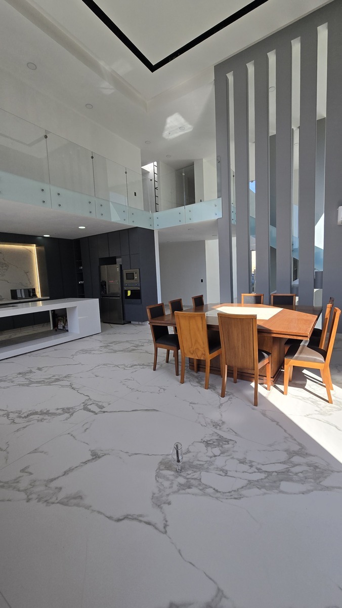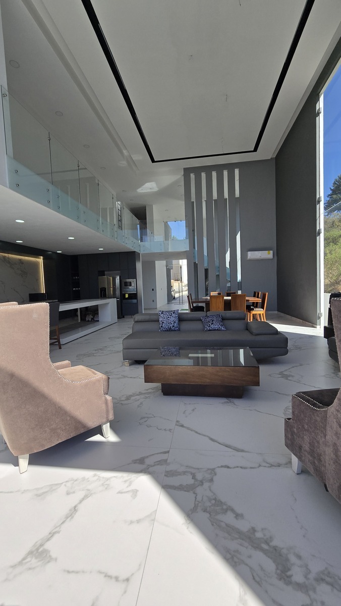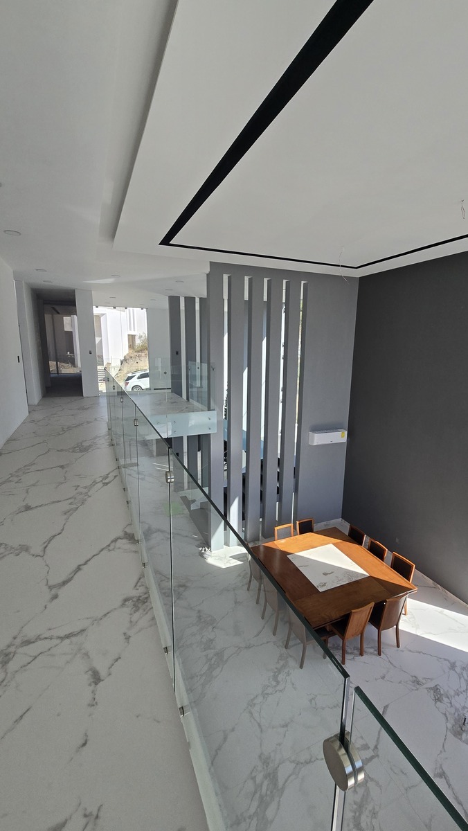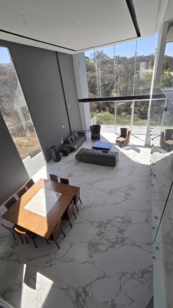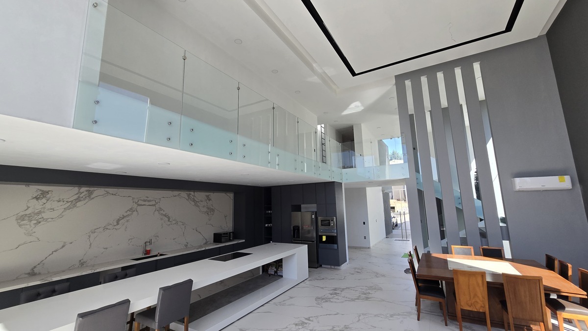 Modern project developed with beautiful views. With large windows and terraces, this house with double height throughout the living area features a spacious living room with terrace, open kitchen, study, and guest bathroom on the ground floor. Family room. Upper floor with 4 bedrooms with bathroom and dressing room. The master bedroom has a large dressing room and beautiful views. In the basement level, there is a game room with access to the garden. (There is preparation for a pool at an additional cost to the published price). Bathrooms. Storage rooms. Parking for 6 covered cars with the option for 8. Laundry room. Service room. Cistern.Moderno proyecto desarrollado con hermosas vistas. Con grandes ventanales y terrazas, esta casa con doble altura en toda la estancia, cuenta en nivel de planta baja con amplia estancia con terraza, cocina abierta, estudio, baño de visitas. Family room. Planta alta con 4 recámaras con baño y vestidor. La principal con amplio vestidor y hermosas vistas. En nivel de sotano, está el salón de juegos, con salida al jardín. (Existe preparación para alberca con costo adicional al precio publicado). Baños. Bodegas. Estacionamiento para 6 autos techados con opción a 8. Cuarto de Lavado. Cuarto de Servicio. Cisterna.