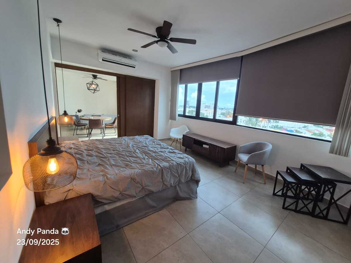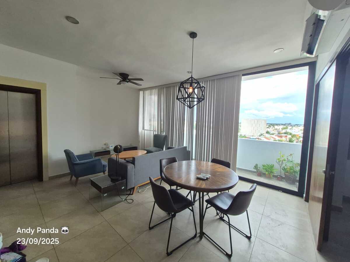 TORRE CATALINA Es un proyecto residencial de lujo, ubicada en el norte de la ciudad de Mérida. Tenemos en renta Departamento disponible para entrega inmediata y con 2 habitaciones completamente amueblado. Se encuentra en el quinto piso, y cuenta con elevador.