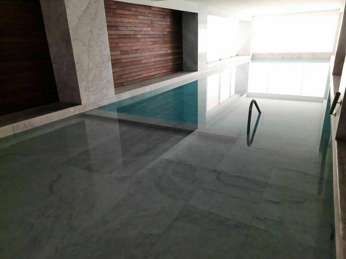 El edificio tiene amenidades: alberca, gimnasio, juegos infantiles.