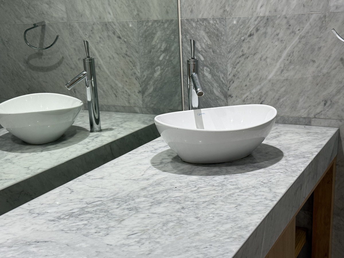 There are 3 bedrooms, each with a dressing room and bathroom,