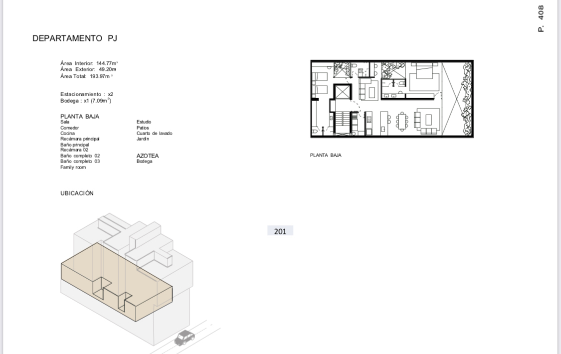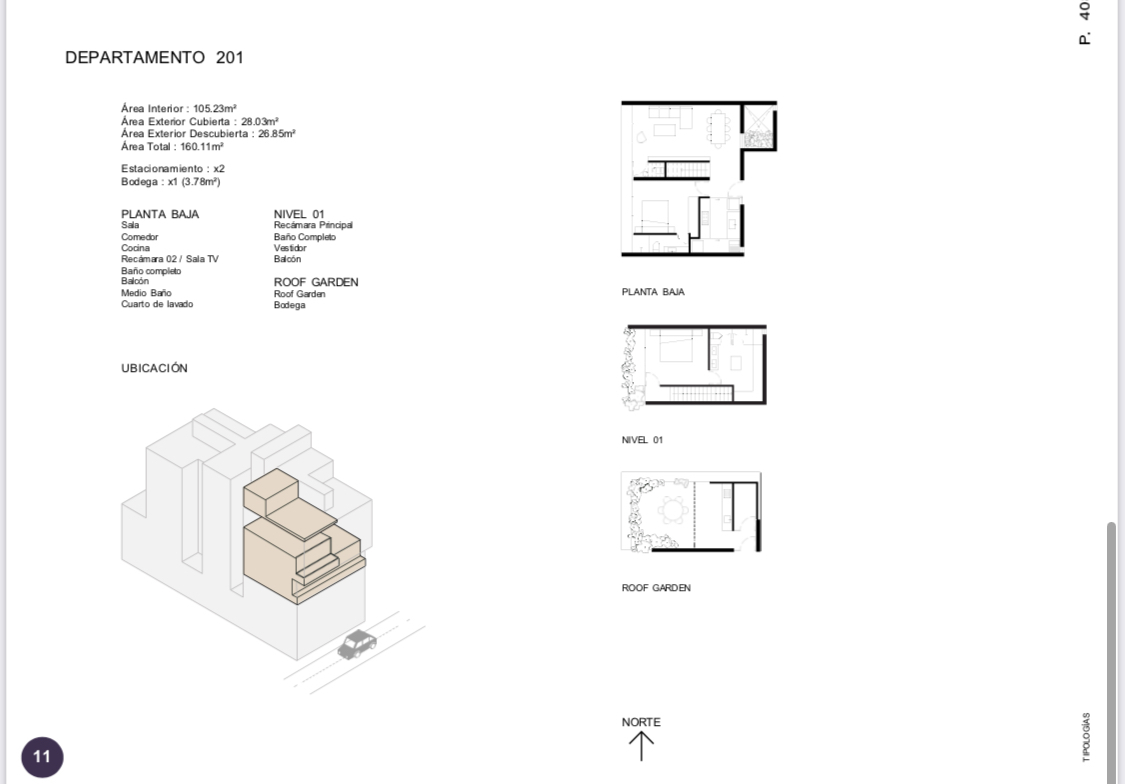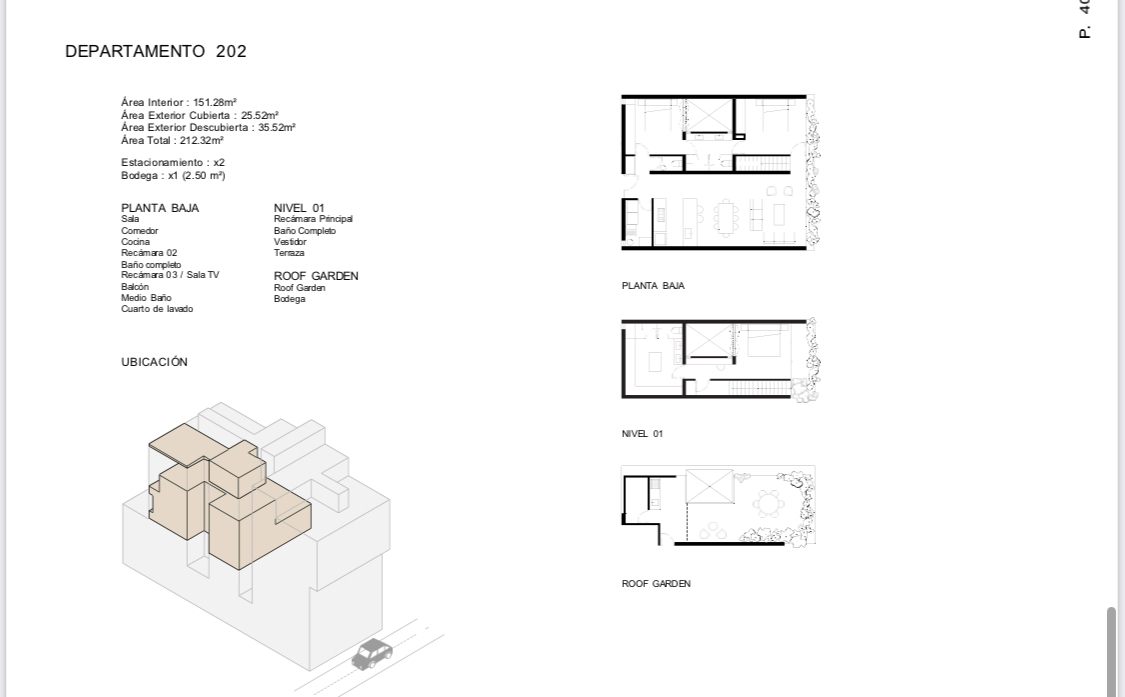 Cuenta con 05 departamentos de 120 a 160m que gozan de patios ajardinados, balcones y azoteas contenidas por vegetación.