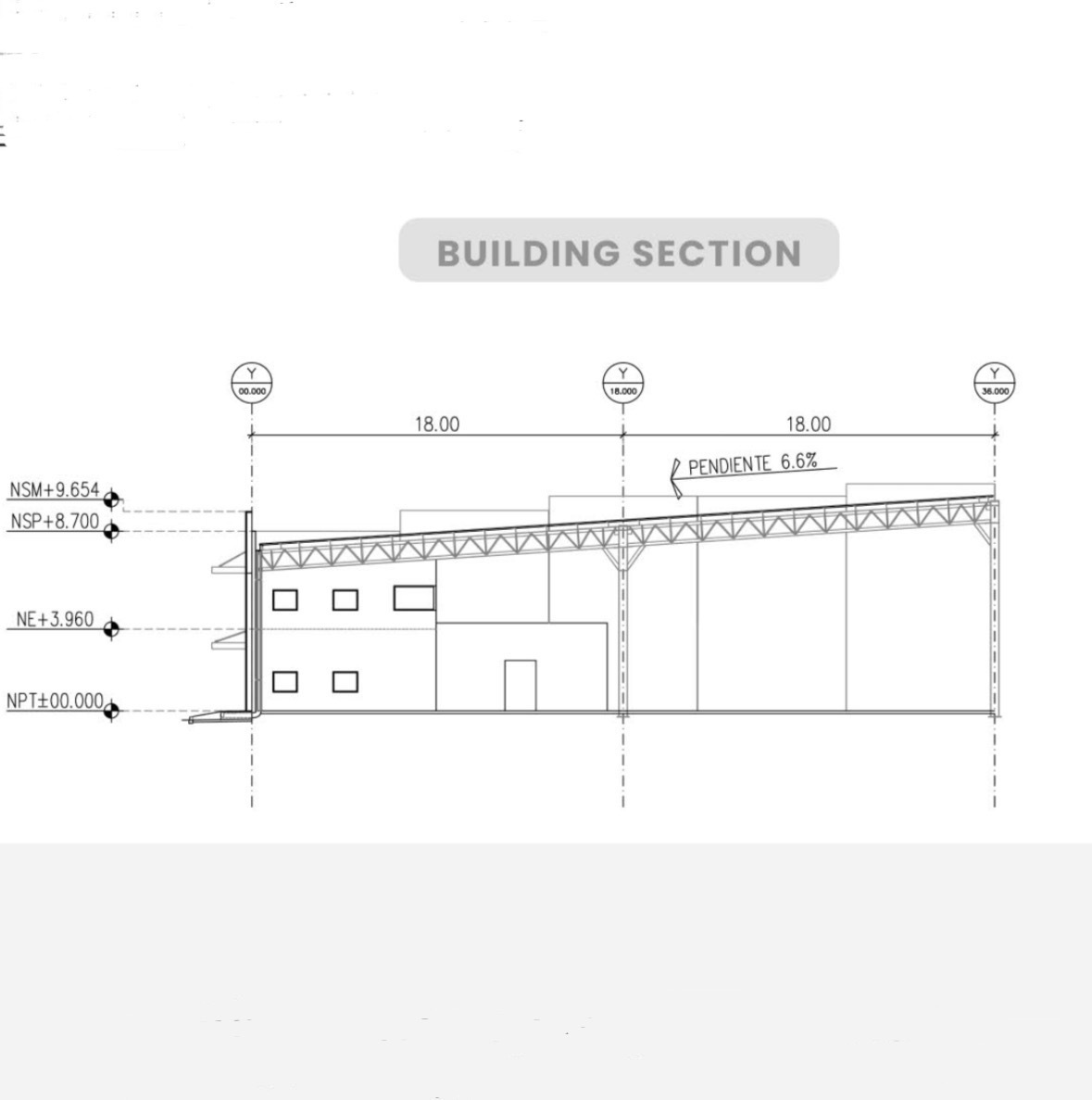 - Bay spacing: 18 m x 10 m / 59 ft x 33 ft