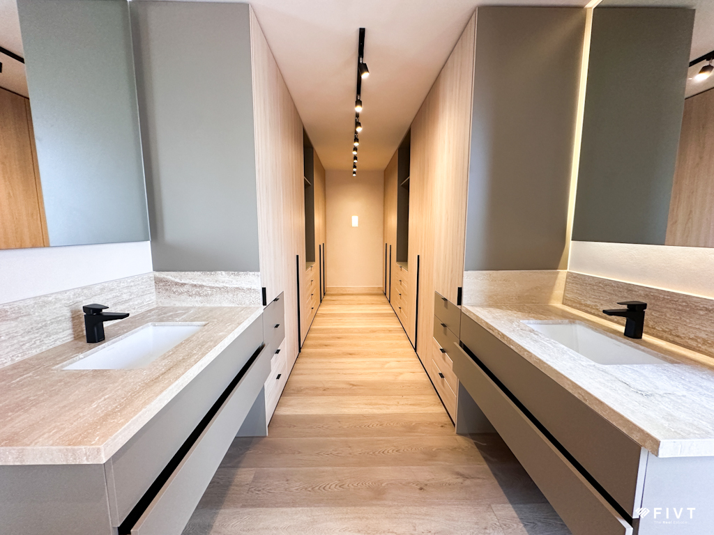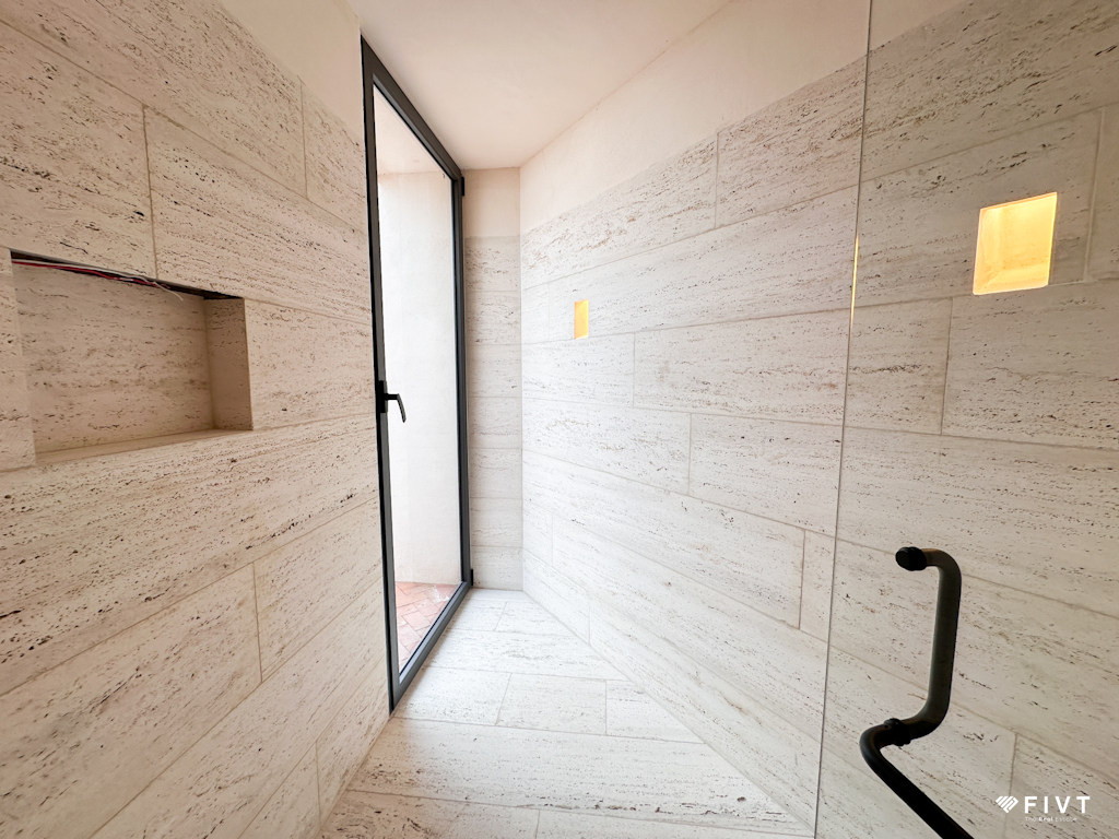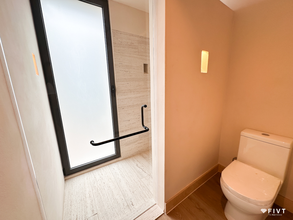The secondary bedrooms are connected to a garden specially designed for play, offering a safe and natural space for children to explore and have fun. The master bedroom is a true retreat, with a spacious walk-in closet and a bathroom that includes a shower with a view of a private garden.