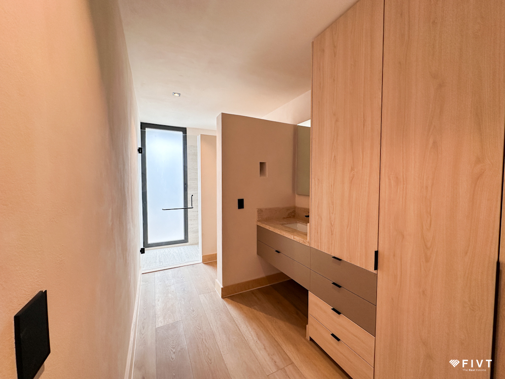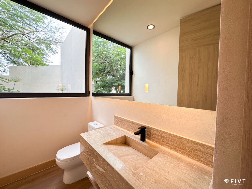 Las recámaras secundarias están conectadas a un jardín pensado especialmente para el juego, ofreciendo un espacio seguro y natural para que los niños exploren y se diviertan. La recámara principal es un verdadero refugio, con un vestidor amplio y un baño que incluye una regadera con vista a un jardín privado.