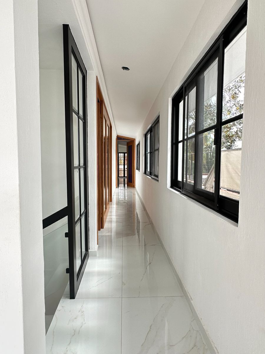 Upon entering, you are welcomed by a garage for 2 cars with an electric gate, a foyer that leads to a private side garden with a storage room and service area. The spacious integral kitchen is fully equipped with a garbage disposal in the sink, a modern quartz and imported marble breakfast bar. The living room and dining room, separate from the kitchen, connect through sliding glass doors that open to the terrace and the barbecue area, which includes an impressive Argentine grill with an elevator, creating a perfect social area for gatherings. The bar area with sink and the television room offer a unique and relaxed atmosphere, ideal for enjoying with family or friends. On the ground floor, you will also find a very spacious bedroom with a full bathroom, closet, storage room, and gym area, which has direct access to the garden through sliding glass doors. To complete the touch of distinction, a floor-to-ceiling relaxation wall with Italian tiles adds a modern and sophisticated atmosphere.