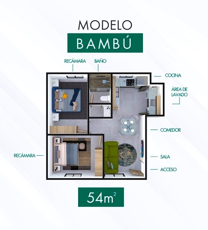 Departamento de 54 m2 de Construcción, se distribuye de la siguiente manera: