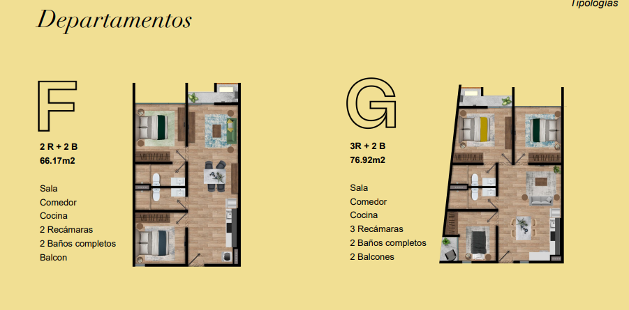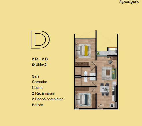 2️⃣ 2 Recámaras + 2 Baños + Balcón 🌿