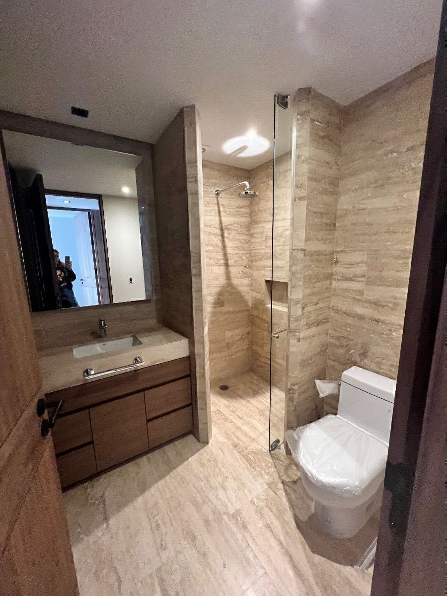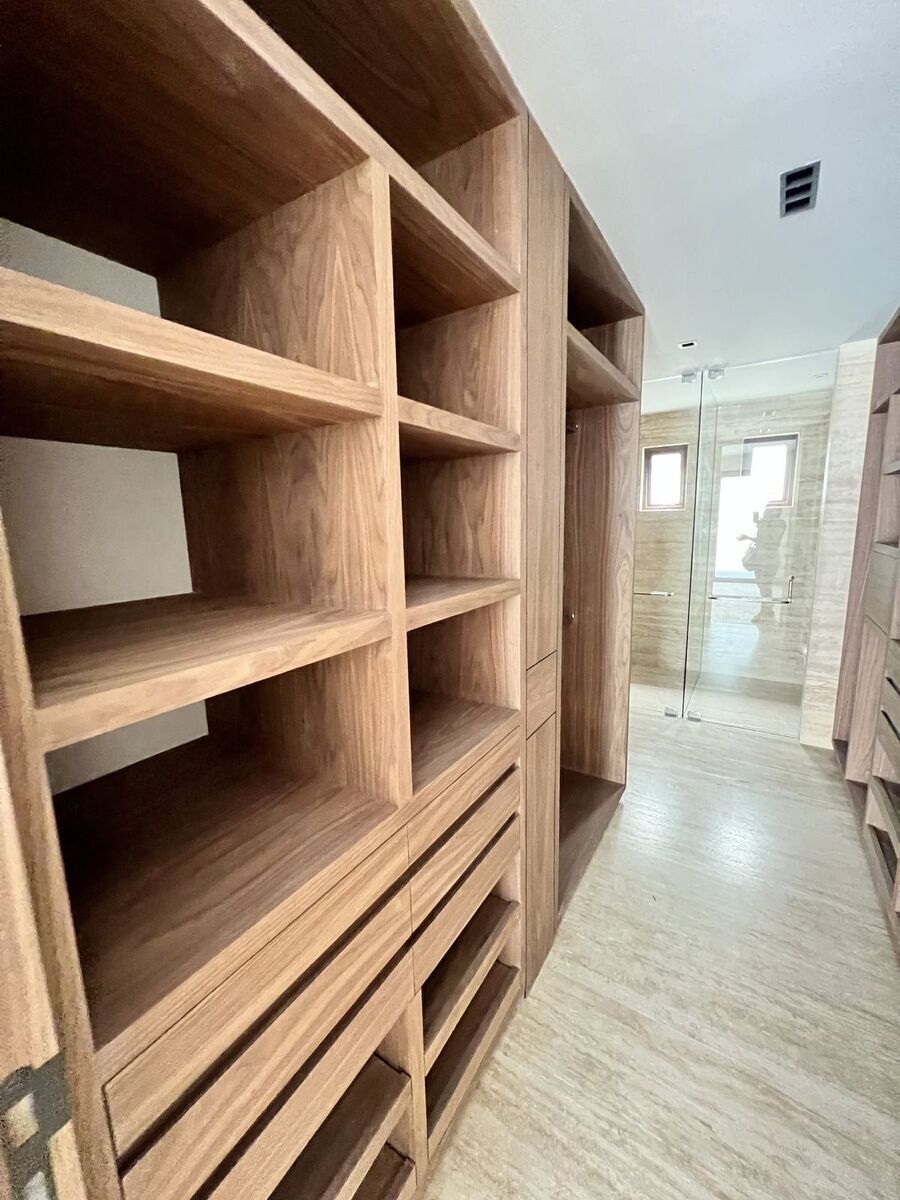 Acabados de lujo , closets y muebles empotrados de madera de nogal y mármol , pisos de madera . La cubierta de la cocina es de cuarzo blanco.