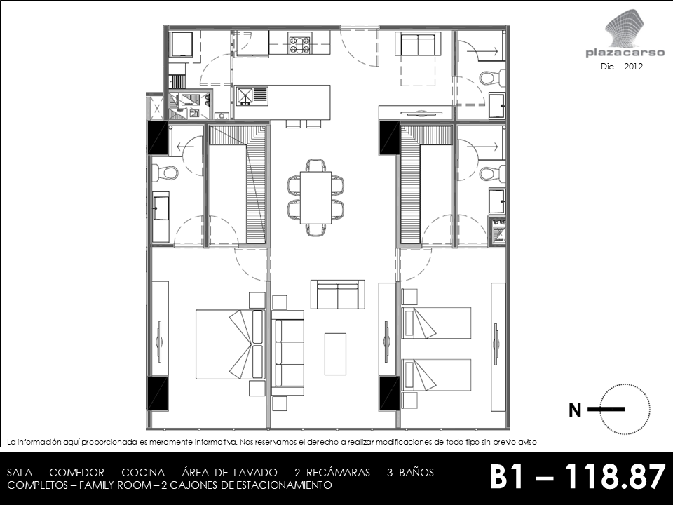 APARTMENT OF 118 M2 COMPLETELY FURNISHED AND EQUIPPED. 2 BEDROOMS EACH WITH A FULL BATHROOM AND WALK-IN CLOSET. NICE OPEN KITCHEN. WASHING AREA. FAMILY ROOM WITH FULL BATHROOM. FIRST-CLASS FINISHES. SPECTACULAR VIEWS. HUGE WINDOWS THAT PROVIDE A LOT OF LIGHT. 2 PARKING SPACES. DIRECT ACCESS TO THE SHOPPING CENTER. COMPLETE SET OF AMENITIES. 24-HOUR SECURITY. PARKING FOR VISITORS. VERY WELL LOCATED AND VERY QUIET TOWER. MAINTENANCE INCLUDED IN THE RENT. ONLY RENTED FOR LONG STAY PERIODS.rentaplazacarso.com