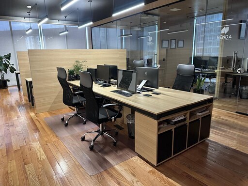 💼 4 cubículos y 4 estaciones en escritorio comunitario para un ambiente de colaboración
