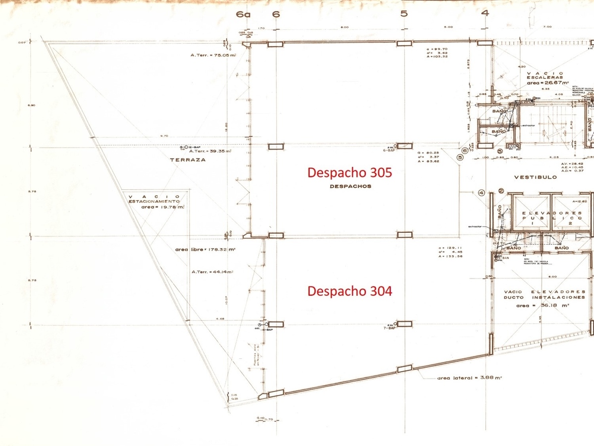 Espacio abierto además de 4 privados (2 de ellos con baño), por aparte baños para mujeres y hombres, además de un baño común en el vestíbulo del elevador, amplia terraza, área para servidor, closet exterior sobre el vestíbulo del elevador que se puede integrar para mayor espacio.