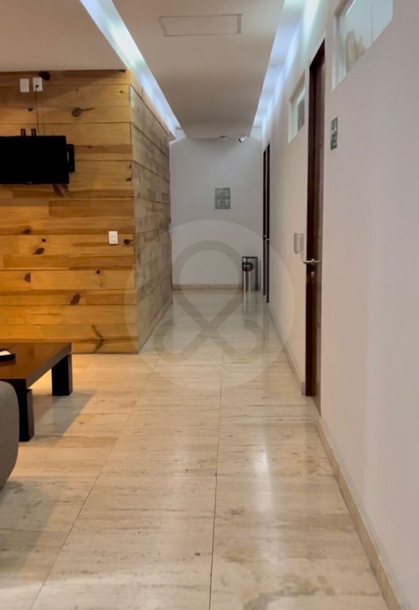 This rental property is located on the third floor of a corporate building in the Jardines del Pedregal neighborhood. It has easy parking, a roof garden, closed circuit, elevator, 24-hour security, and visitor parking. Built in 2015, the property is in excellent condition and has a total area of 29.52 m². The office includes light, internet, cleaning, and reception. The office includes a half bathroom.