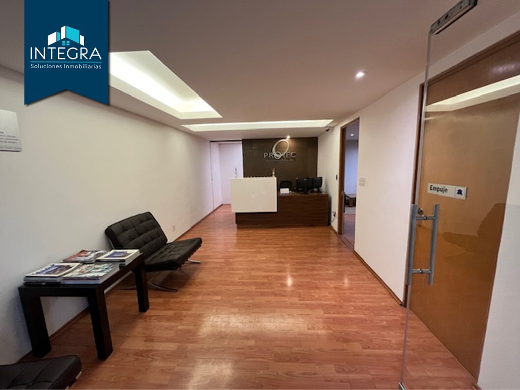MAC. AMPLIA OFICINA RECIEN REMODELADA!!! Ven a conocer esta oficina y estrénala. Te va a encantar por su amplitud, ubicación, seguridad y servicios que tiene alrededor. Cuenta con 4 privados gerenciales grandes, 3 baños privados (además de los que tiene el edificio). Tiene una recepción, sala de juntas , una área abierta muy grande para que la adaptes a tus necesidades, un pequeño comedor con cocina chica y una bodega. Además cuenta con 5 estacionamientos y el edificio tiene servicio de valet parking. El mantenimiento es de $15,000 pesos. VISITALA!!!!!!. *Precio sujeto a cambio sin previo aviso.