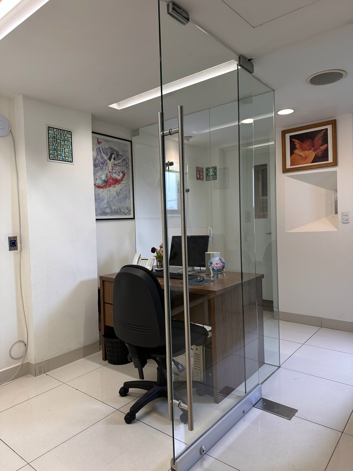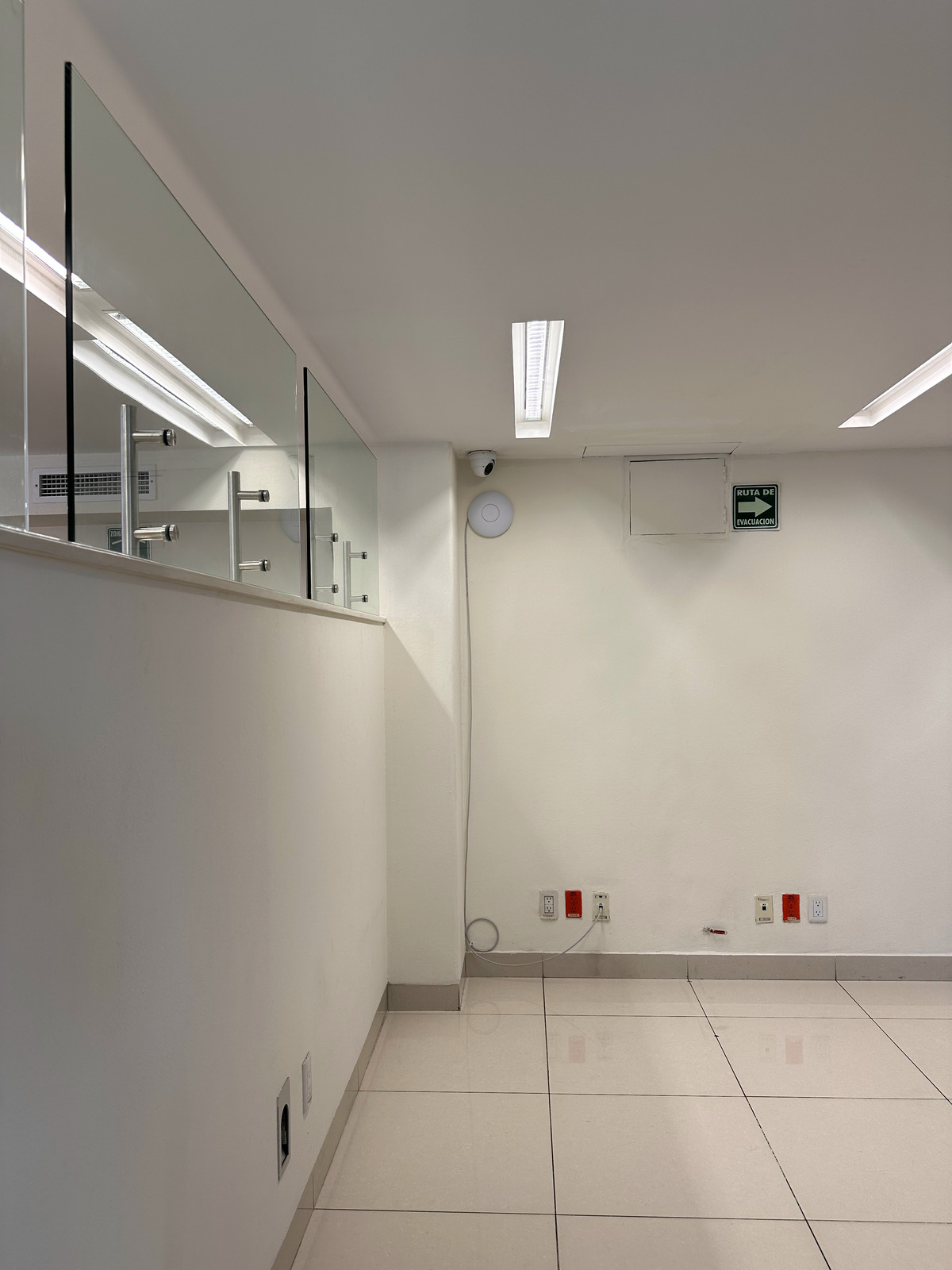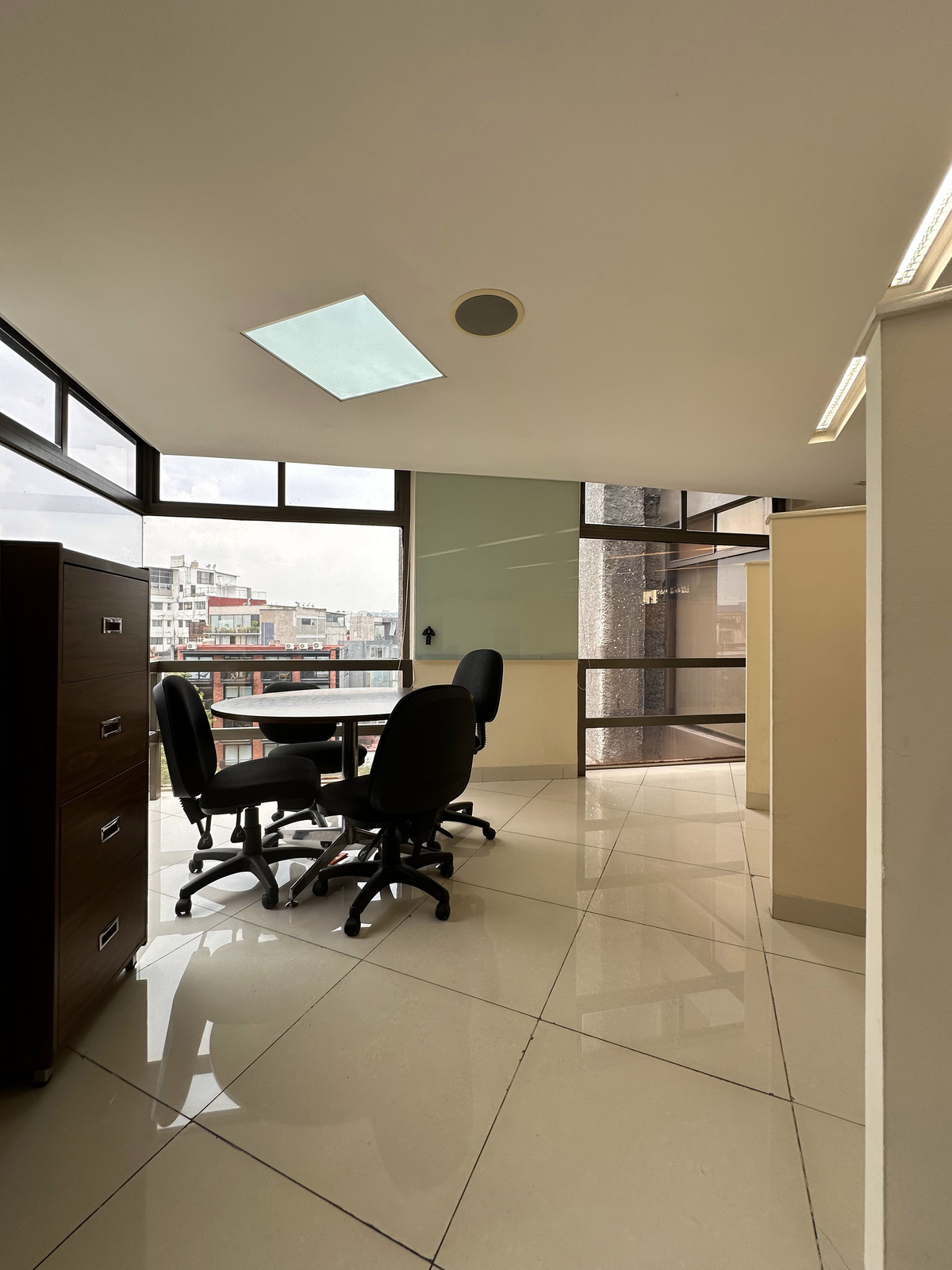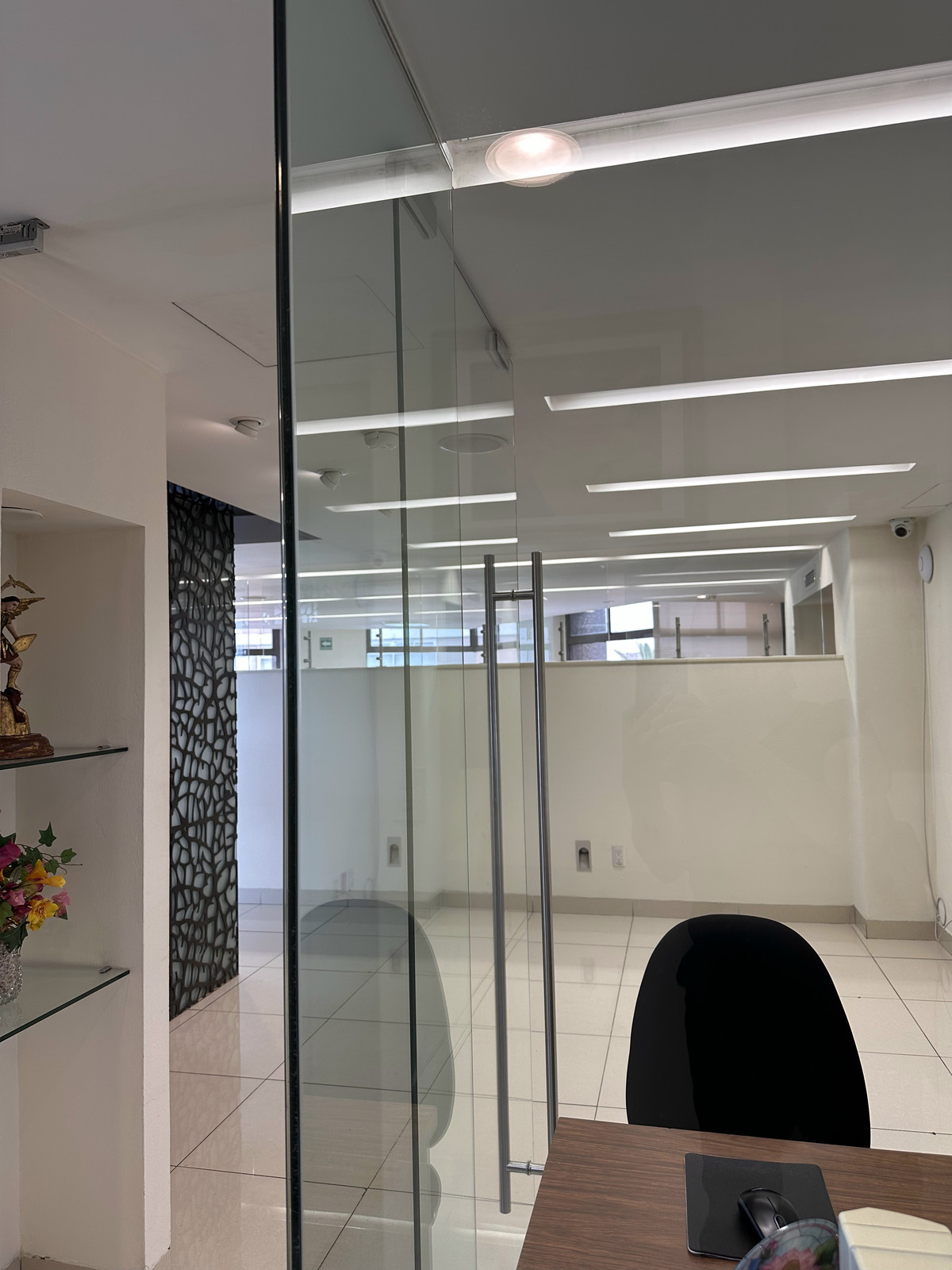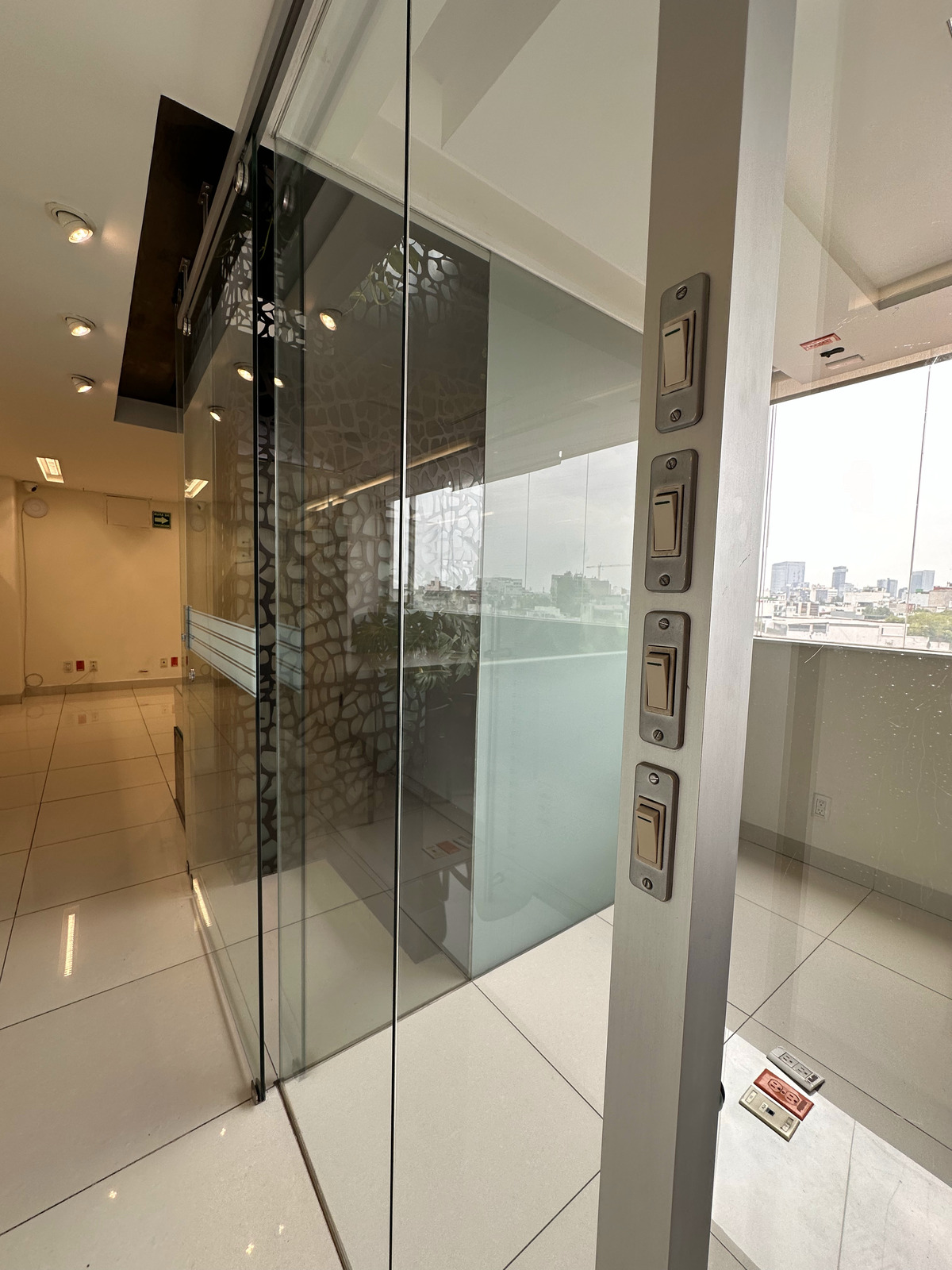 It has direct elevator access to the reception area, waiting room, reception module with tempered glass with a service window, decorative shelves, tempered glass, spacious area that you can use in various ways and make the most of the distribution of the entire office, shelves, well-lit hallways with modern details of tempered glass and good quality, drywall divisions, tempered glass doors and chrome accessories, it has an isolated executive office with tempered glass and decorated, executive desks, it has several work modules or data capture areas, meeting or training area with a central round table, modern and a wall-mounted glass whiteboard, blinds on the windows, filing area, private storage area.Aprovecha la excelente ubicación de ésta oficina ubicada en la colonia Hipódromo en la calle de Campeche esquina con Avenida Nuevo León, muy cerca a Insurgentes Sur; está en un 8º piso con muy buena iluminación natural y vistas espectaculares, es espaciosa, funcional, con buena distribución y seguridad; tiene un lugar de estacionamiento, cuenta con dos baños, área de servicios, espacio compartido de cocineta equipada; los espacios son confortables, con privacidad, iluminación led, bocinas en plafón para que conectes música ambiental, sensores y video vigilancia.