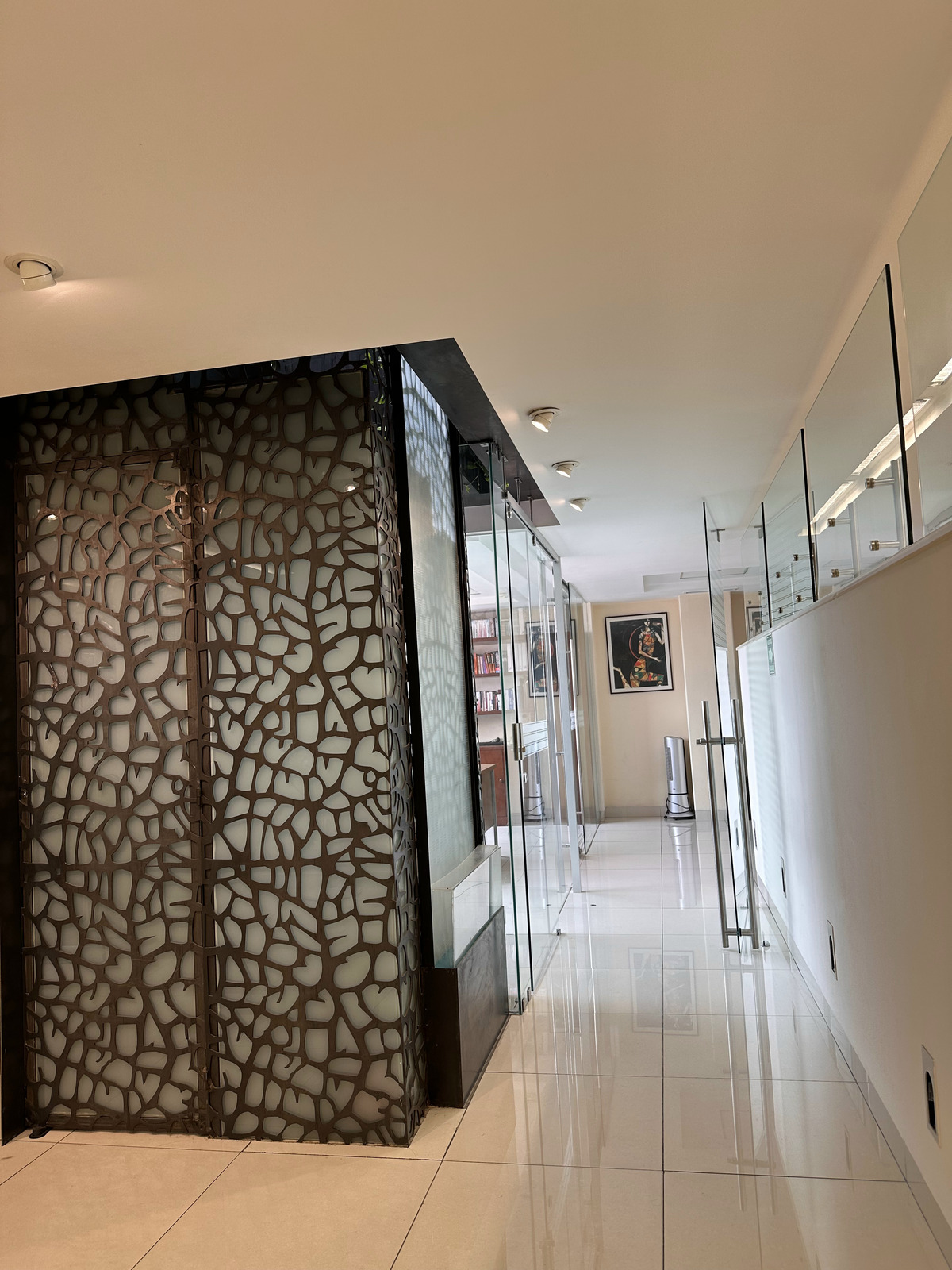 Cuenta con acceso directo del elevador al área de recepción, sala de espera, módulo de recepción con cristal templado con ventanilla de atención, entrepaños decorativos, cristal templado, área espaciosa que puedes ocupar de diversas formas y sacar gran provecho a la distribución de toda la oficina, anaqueles, pasillos bien iluminados con detalles modernos de cristal templado y de buena calidad, divisiones de tablaroca, puertas de cristal templado y accesorios cromados, tiene un privado directivo aislado con cristal templado y decorado, escritorios ejecutivos, cuenta con varios módulos de trabajo o de captura de datos, área de reunión o de capacitación con mesa redonda central, moderno y pizarrón de cristal empotrado en muro, persianas en las ventanas, área de archivo, área privada de almacenaje.