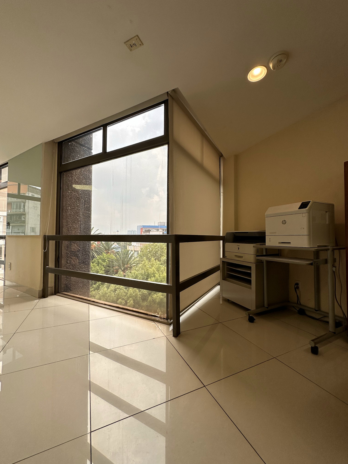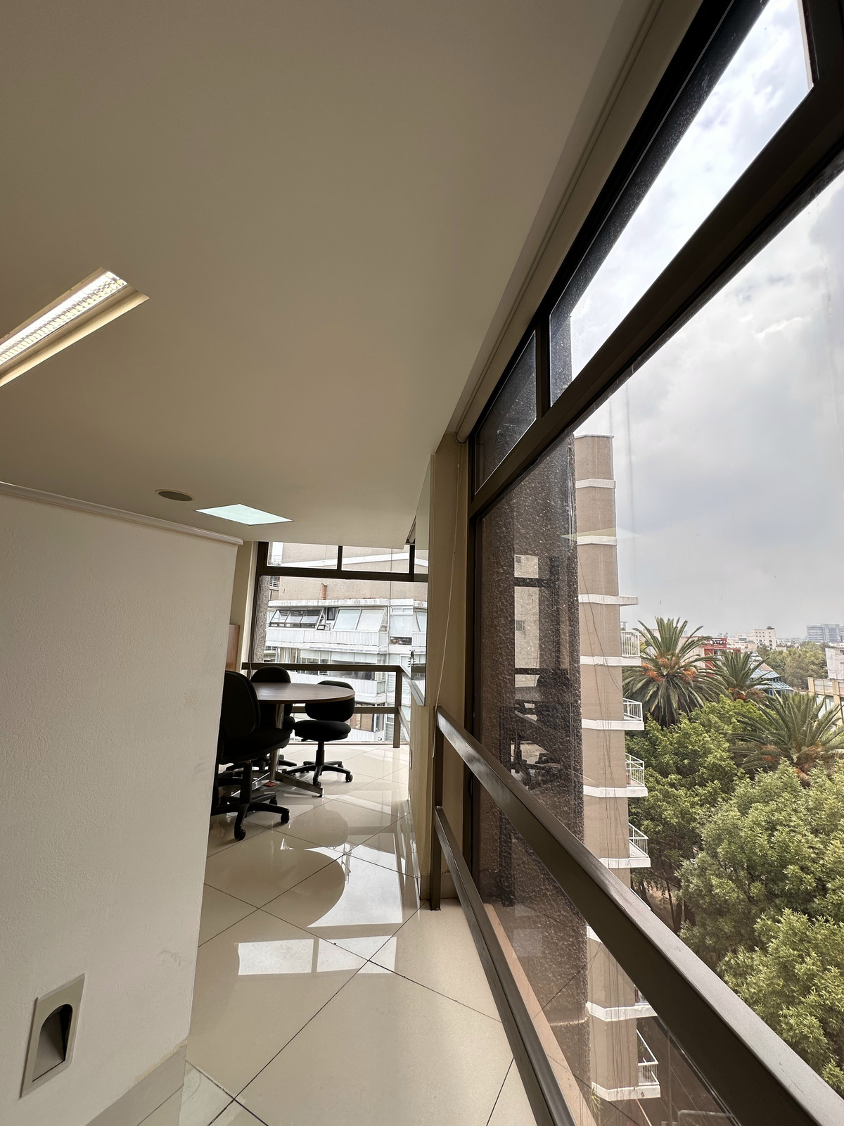 Take advantage of the excellent location of this office located in the Hipódromo neighborhood at the corner of Campeche Street and Nuevo León Avenue, very close to Insurgentes Sur; it is on the 8th floor with very good natural lighting and spectacular views, it is spacious, functional, with good distribution and security; it has a parking space, two bathrooms, service area, shared space with an equipped kitchenette; the spaces are comfortable, with privacy, LED lighting, speakers in the ceiling to connect ambient music, sensors, and video surveillance.