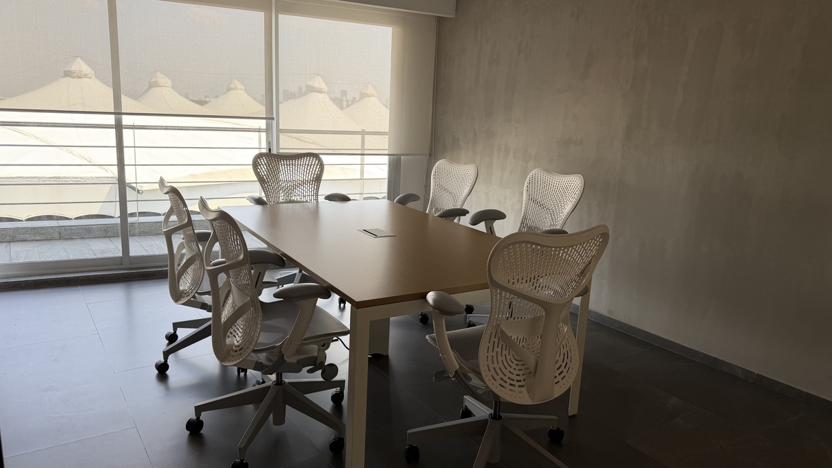 Spectacular new and fully finished office for rent located in Dolmen Center, in Bosque Real. It is situated on a Coworking floor where you have access to two meeting rooms, a dining area, and reception.