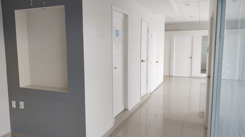 Valet parking in the building for visitors and a lot of security.Excelente oficina moderna con áreas comunes en el PH, que tiene 10 oficinas , un salón de usos múltiples con terraza grande, recepción, un comedor grande para todo el edificio con mesas y sillas, cocineta con refrigerador microondas y tarja para lavar platos.