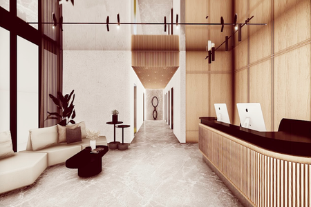 - Reception with quality finishes and an office with a unique stained glass that adds elegance.