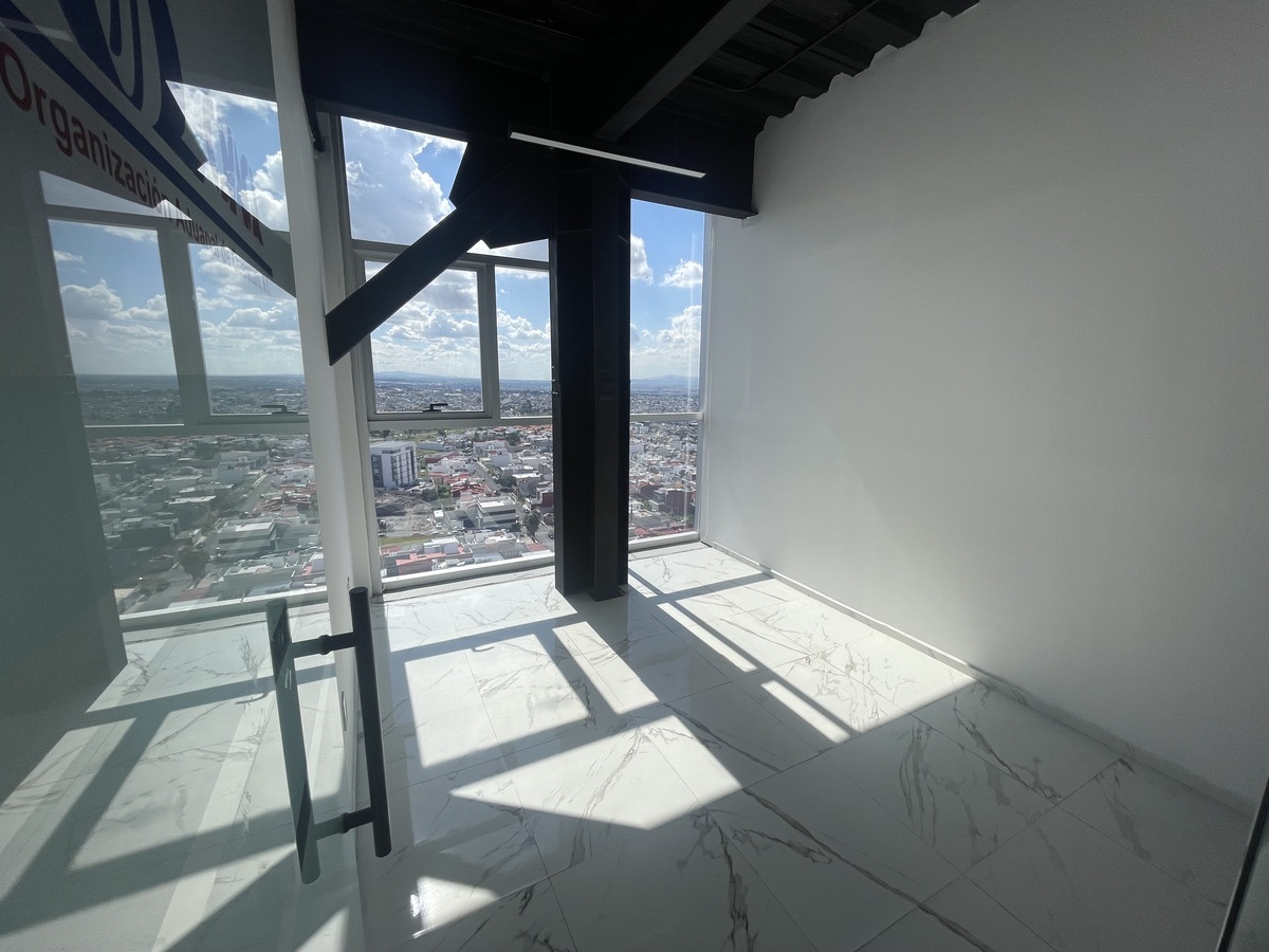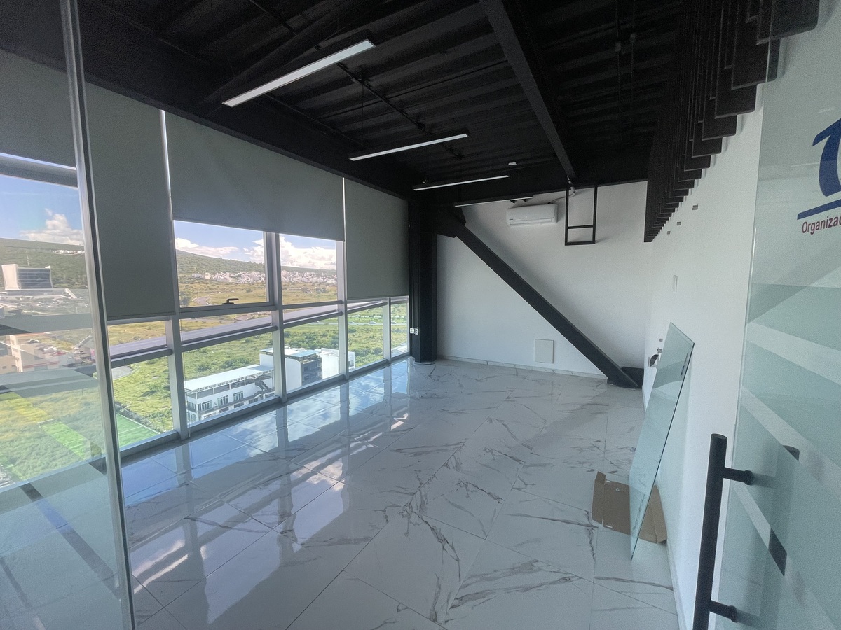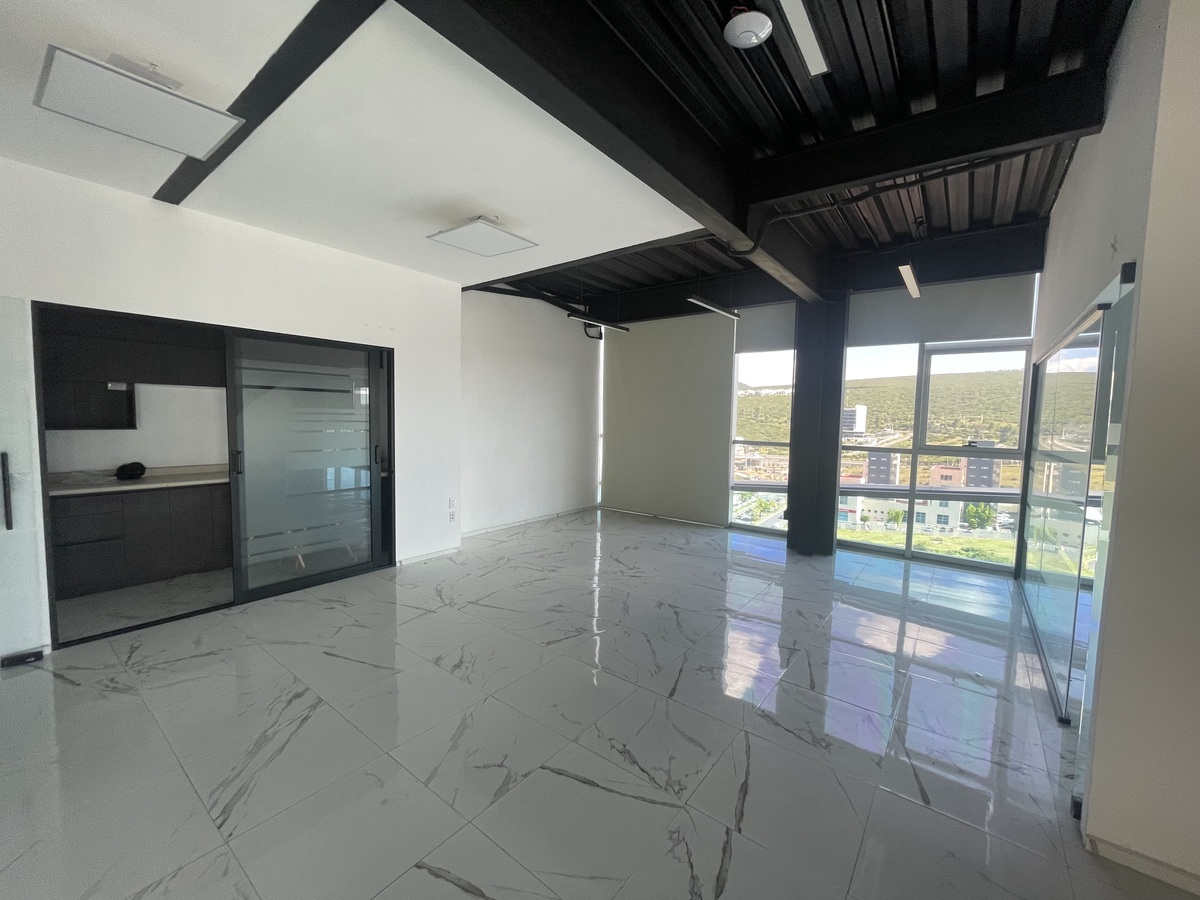 Office for rent on the 16th floor within the modern MOMENTUM complex in the financial and commercial area of highest growth in Qro; which will have a hospital, offices, and commercial spaces; the office has a reception area, luxury finishes, a reception area, a workspace for modular desks, and a site area. The building has men's and women's restrooms for visitors; additionally, the complex has amenities for employees on the 2nd floor such as a dining room, pool, steam room, restrooms, gym, and controlled access from the modern lobby.Oficina en renta en piso 16 dentro del moderno complejo MOMENTUM en la zona financiera y comercial de mayor crecimiento de Qro; el cual contará con hospital, consultorios, oficinas y locales comerciales; la oficina tiene área de recepción, acabados de lujo , área de recepción, área de trabajo para escritorios modulares, área de site. El edificio cuenta con baños de hombres y mujeres para visitas; además el complejo cuenta con amenidades para los empleados en el piso 2 como son comedor, alberca, vapor, baños, gimnasio, acceso controlado desde el moderno lobby.