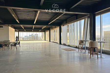 20 floors of offices, 2 lobbies, 7 elevators, 2 emergency stairs, 5 basements, multipurpose dining room, meeting rooms, rooftop, helipad.