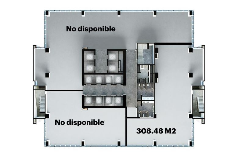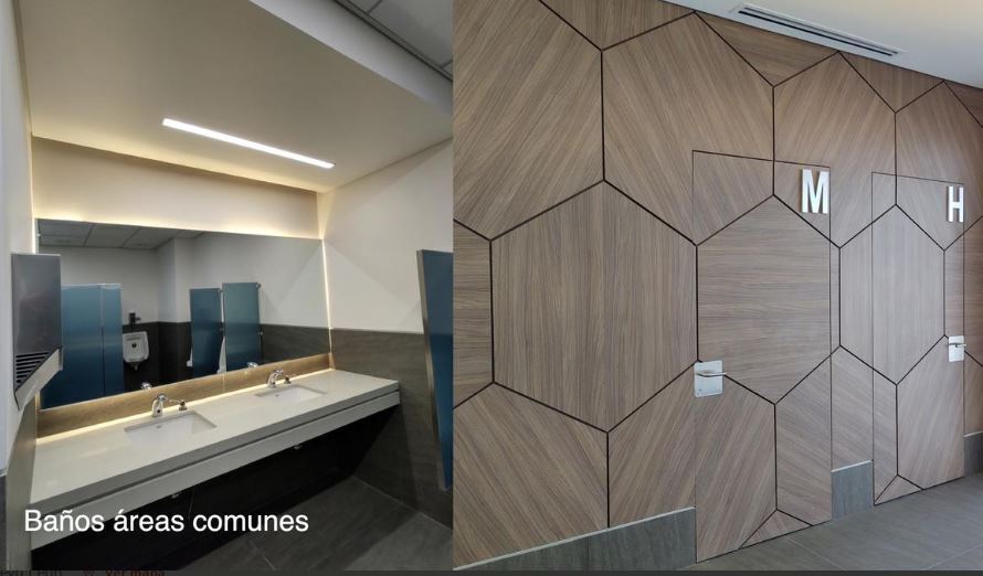 El edificio cuenta con 15 niveles de oficinas y un espacio común para uso de todos los inquilinos, con: