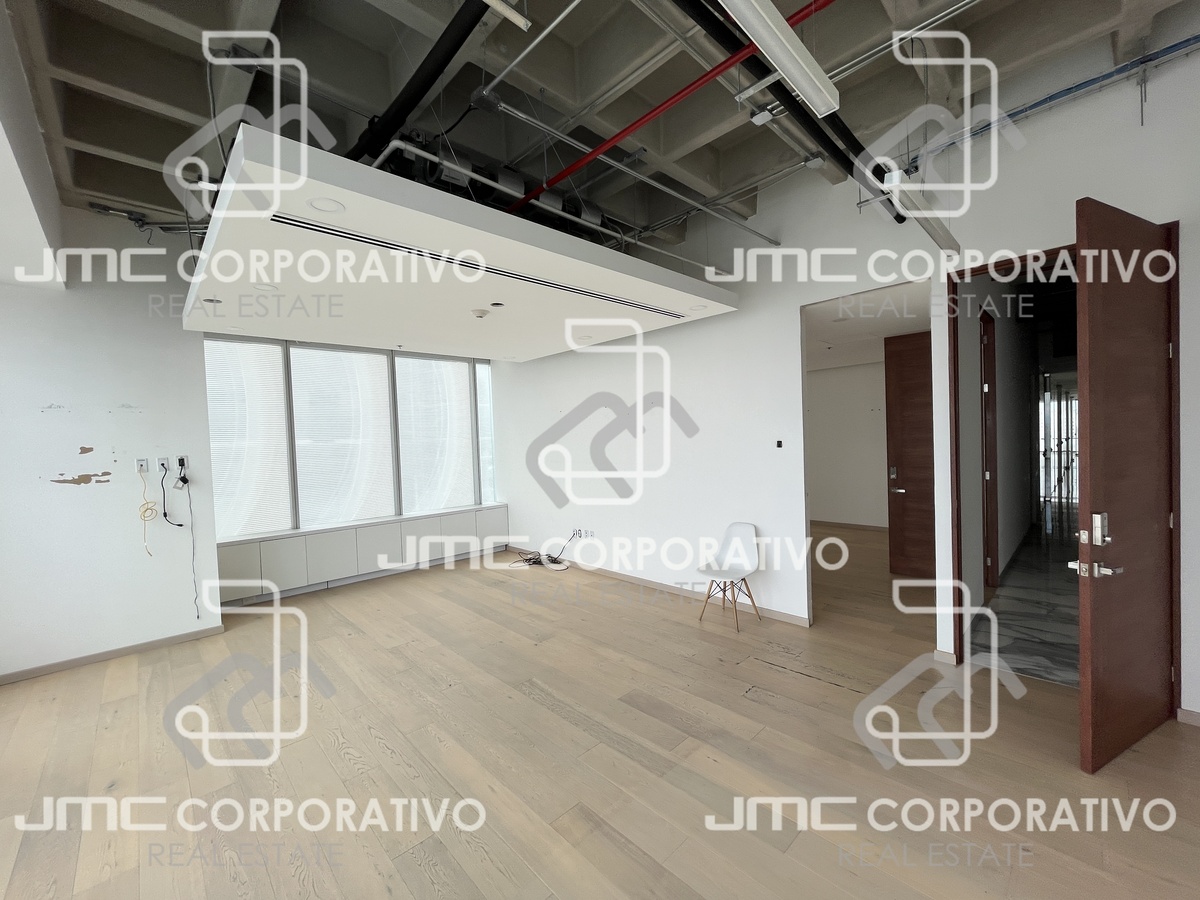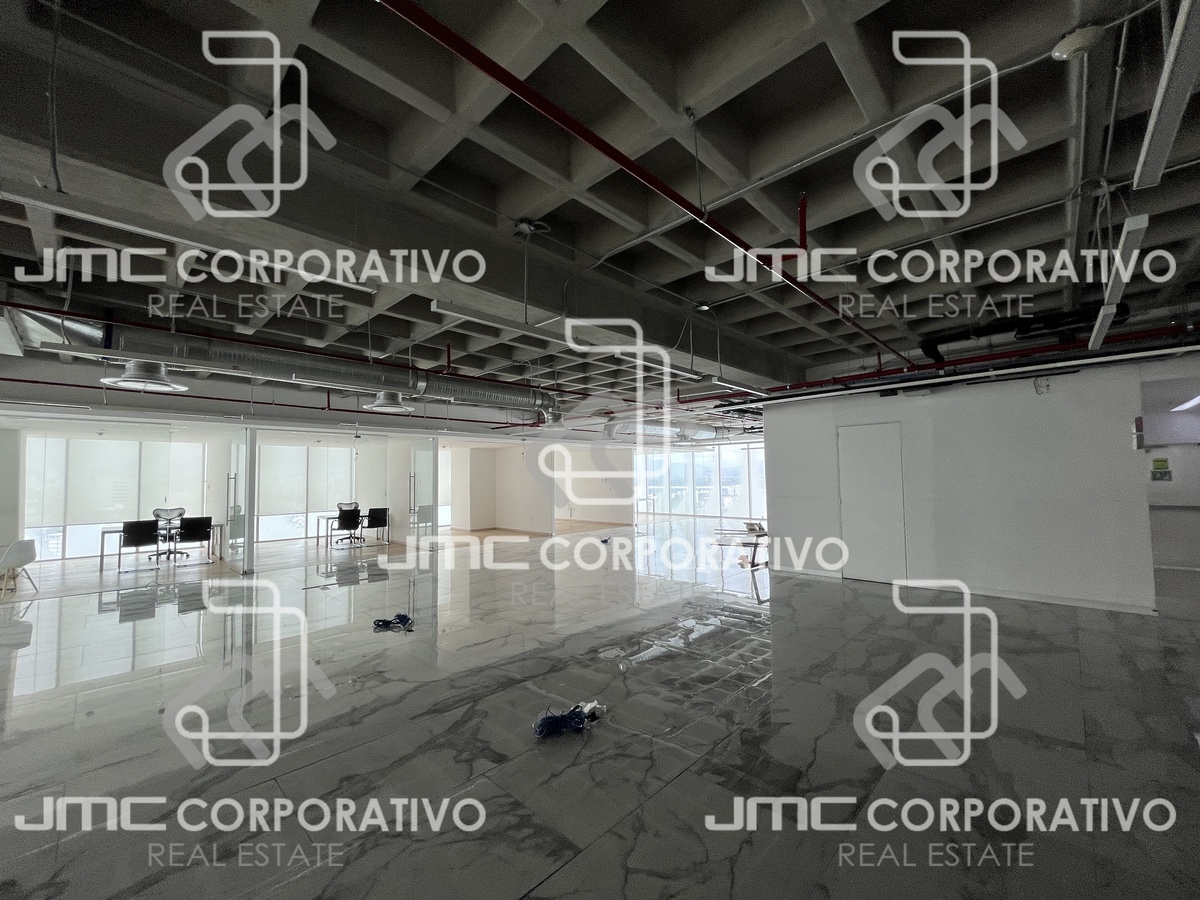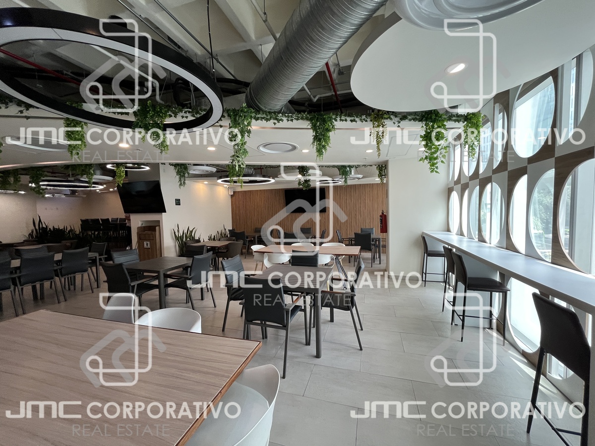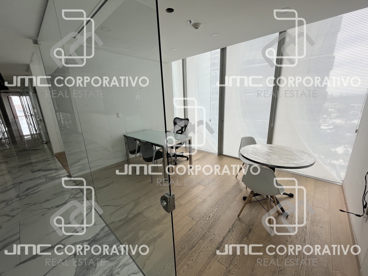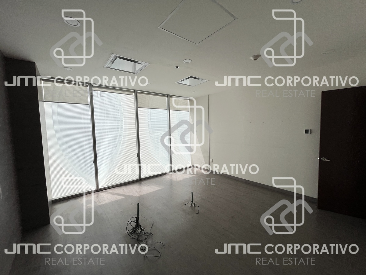 La oficina cuenta con espacios privados, baño completo habilitado, espacio de área de trabajo, sala de juntas, espacio de site, sistema de aire acondicionado, sistema de detección de incendios, sistema de rociadores e iluminación.