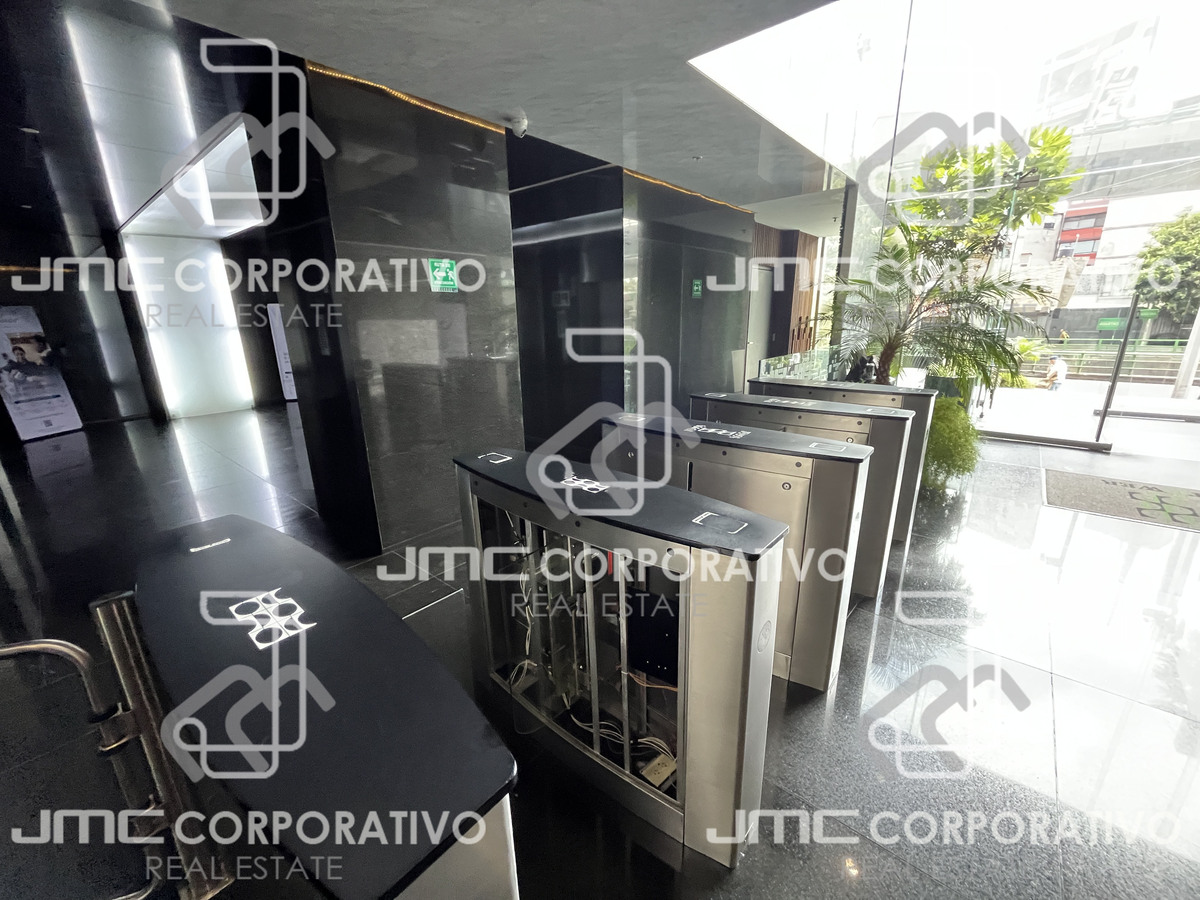 Office conditioned in a corporate building, it has two accesses, the main one located on the Periférico, both pedestrian and vehicular, and an access ramp. The second access is pedestrian and is located on Monte Cameroon street, which has a vehicular bay.