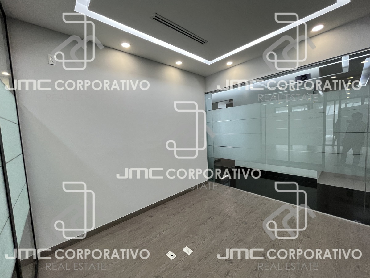 La oficina cuenta con tres espacios privados, espacio de área de trabajo, sala de juntas, espacio de site, sistema de aire acondicionado, sistema de detección de incendios, sistema de rociadores e iluminación..