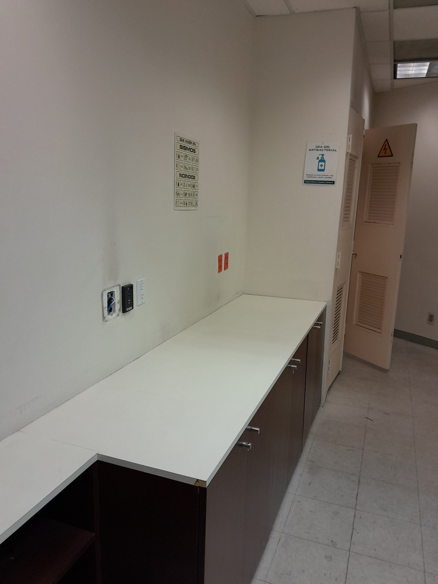 El espacio está compuesto por recepción, 6 privados sala de juntas, cocineta, al centro se localizan espacio abierto para estaciones de trabajo que se pueden modificar a las necesidades del cliente